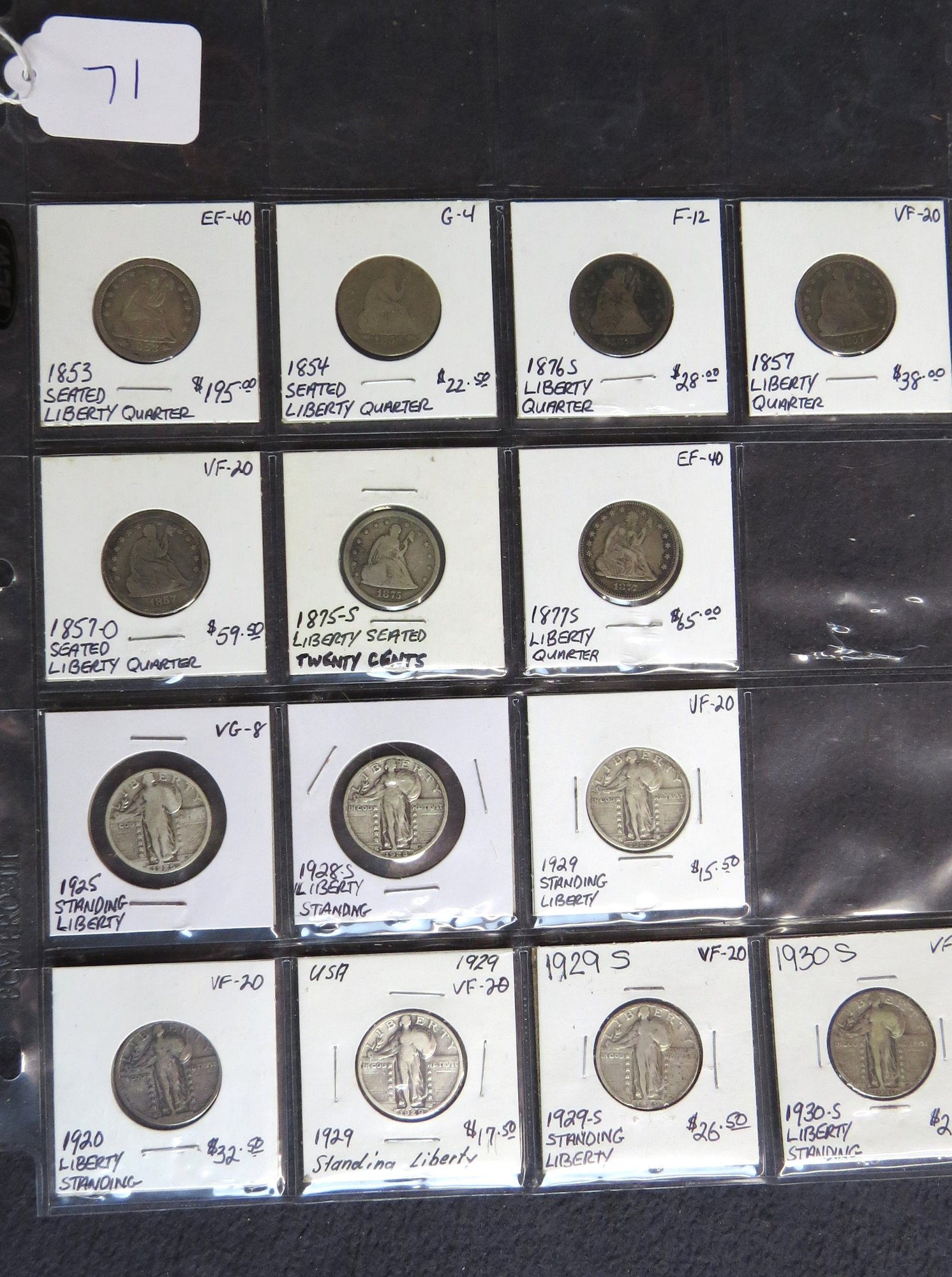 seven standing Liberty, 1925, 1928-S, 1929, 1920, 1929, 1929-S, 1930-S