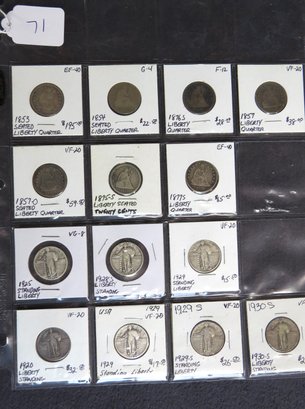 seven standing Liberty, 1853, 1854, 1876-S, 1857, 1857-O, 1875-S, 1877-S,