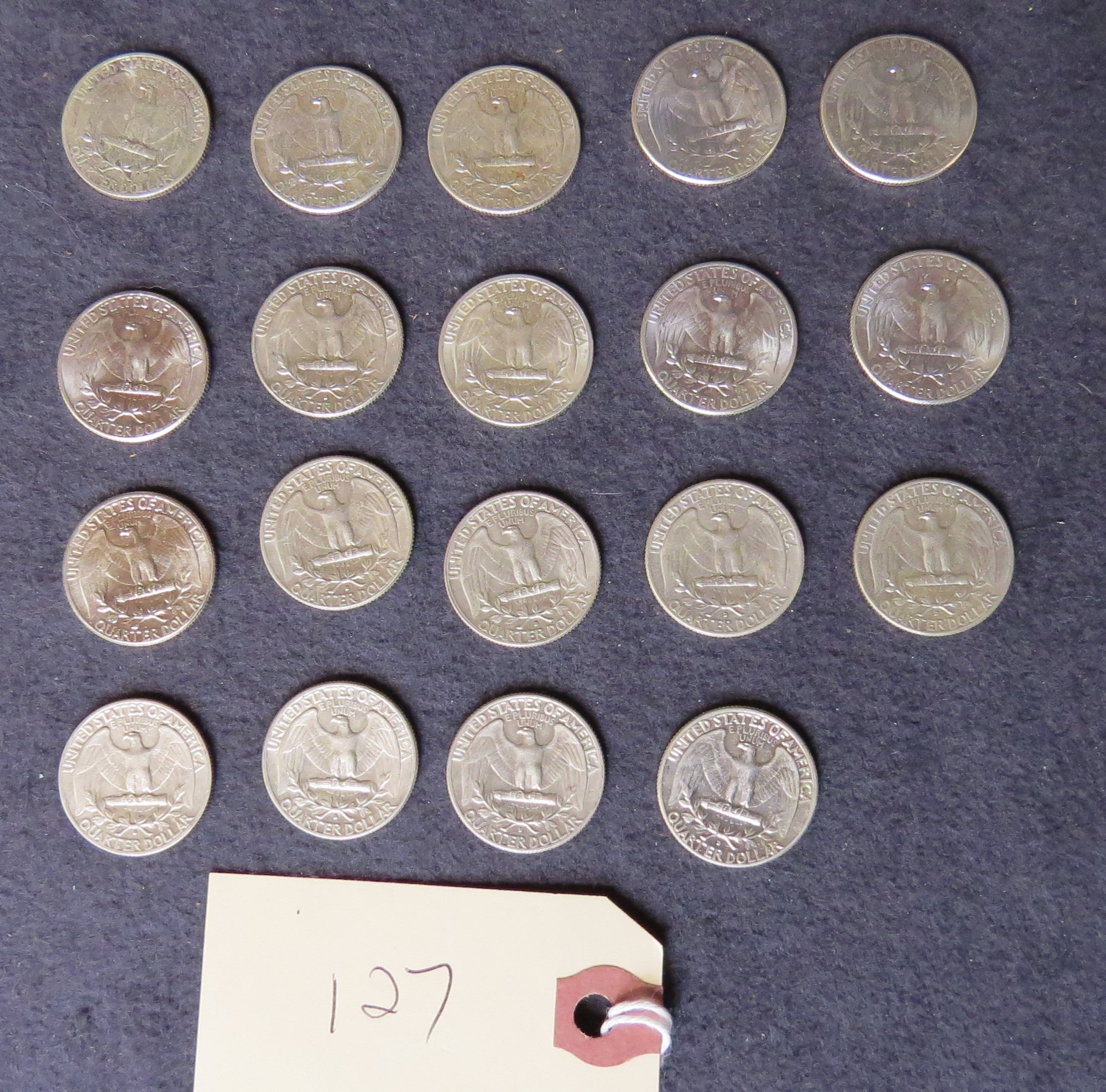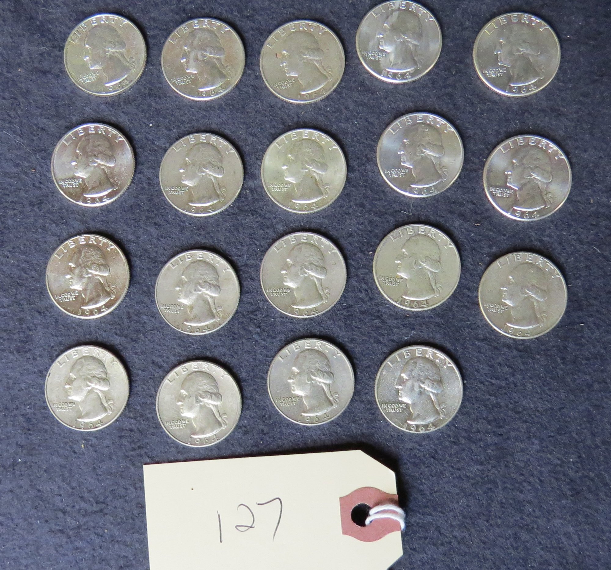 Lot Of 19 Washington Silver Quarters, Eleven 1964-D, Eight 1964
