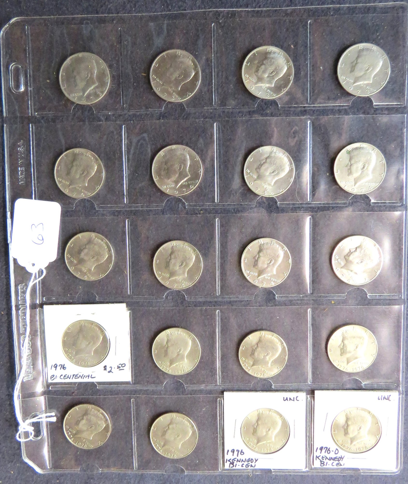 four 1973, six 1974, two 1974-D, eight 1976 Bicentennial quarters