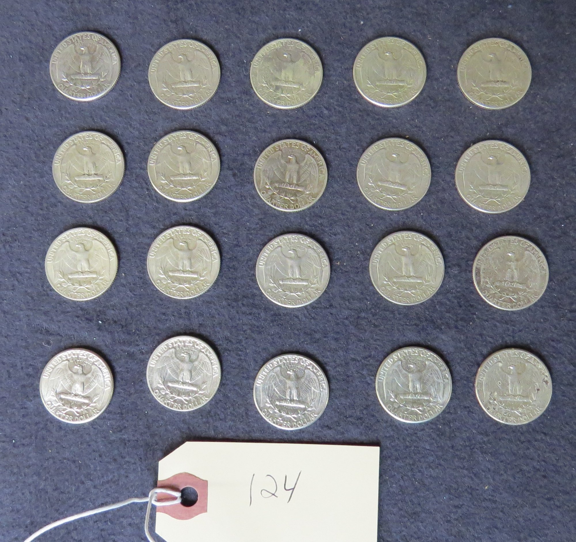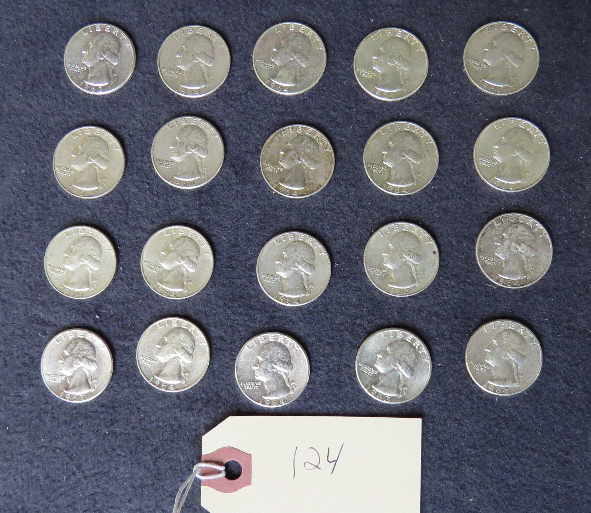 Lot Of 20 Washington Silver Quarters, One 1963, Nineteen 1964