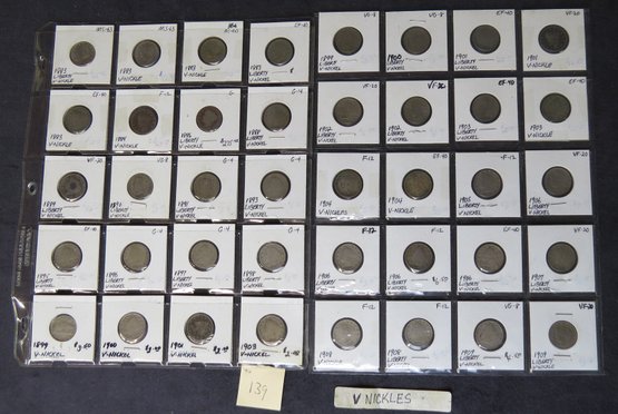 Lot Of 40 Liberty Head Nickels, Mixed Dates