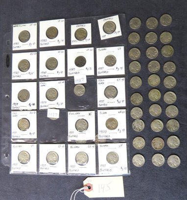 Lot Of 50 Buffalo Nickels, Mixed Dates