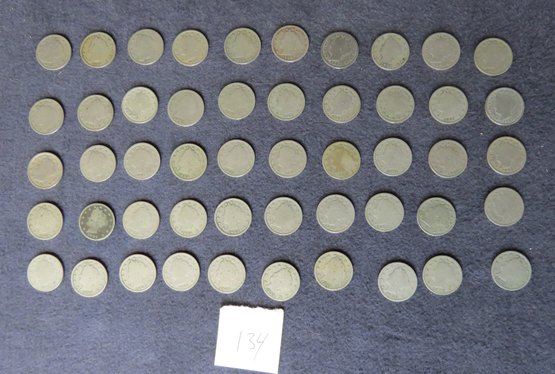 Lot Of 50 Liberty Head Nickels, Mixed Dates