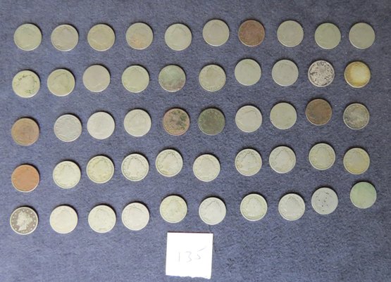 Lot Of 50 Liberty Head Nickels, Mixed Dates