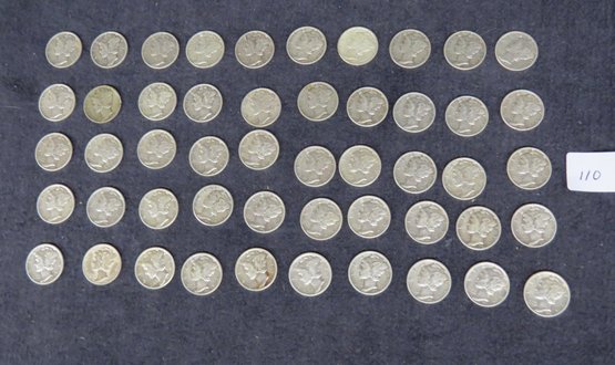 Lot Of 50 Mercury Dimes, 1943 And 1944