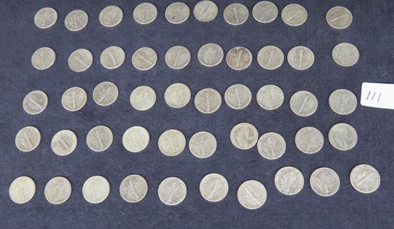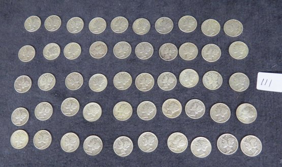 Lot Of 50 Mercury Dimes, 1944 And 1945s