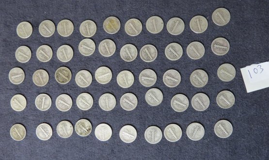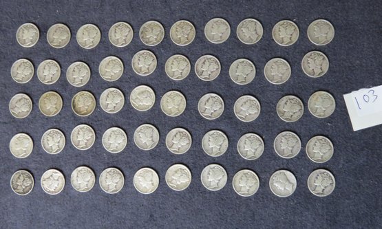 Lot Of 50 Mercury Dimes, Dated Vary From 1934-1939