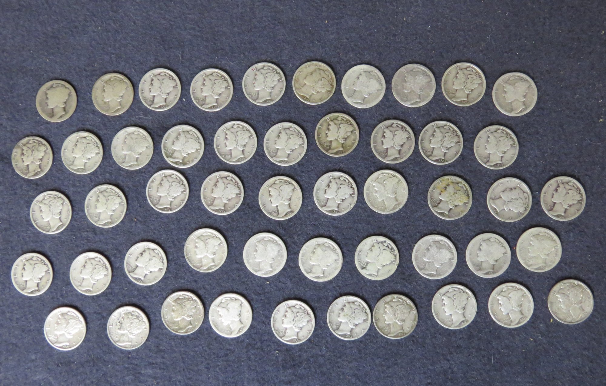 Lot Of 50 Mercury Dimes, Dated Vary In The 1930s