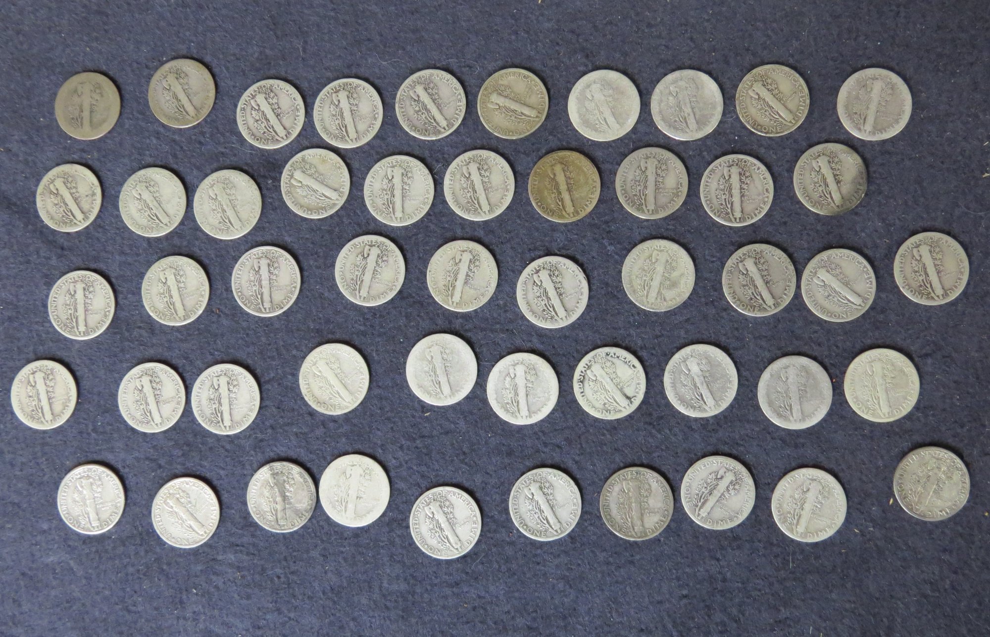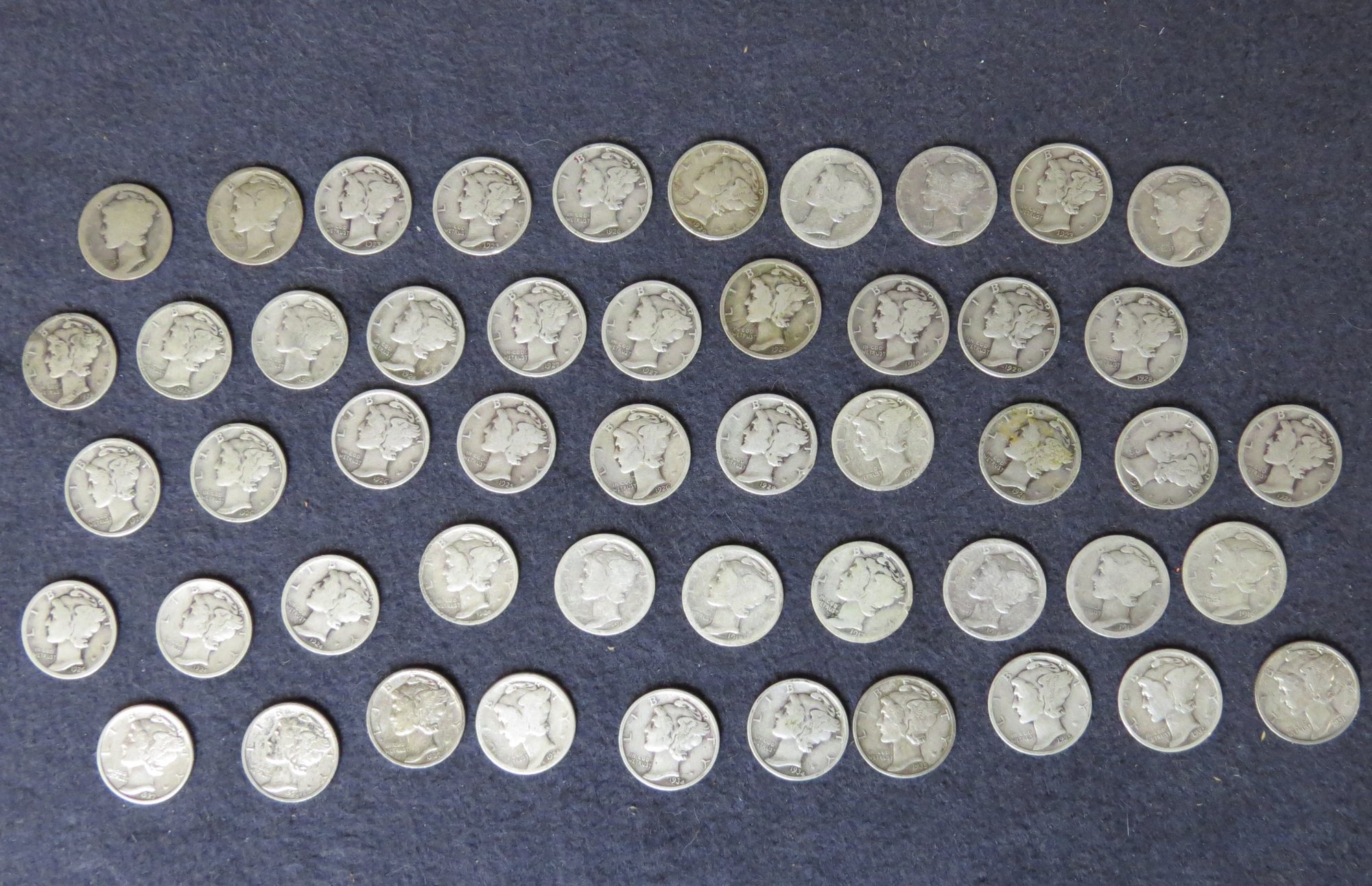Lot Of 50 Mercury Dimes, Dates Vary From 1917-1935