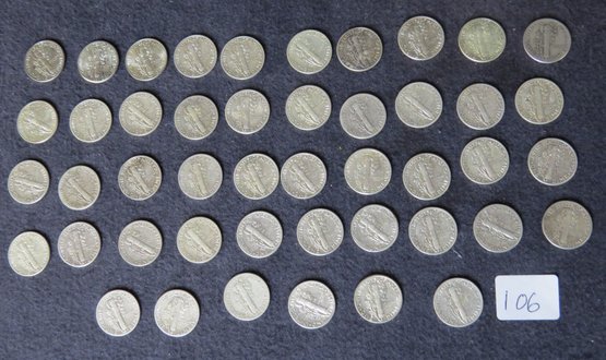 Lot Of 50 Mercury Dimes, Dates Vary From 1934-1945