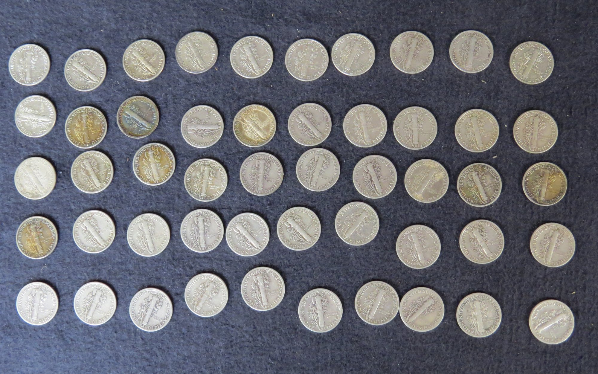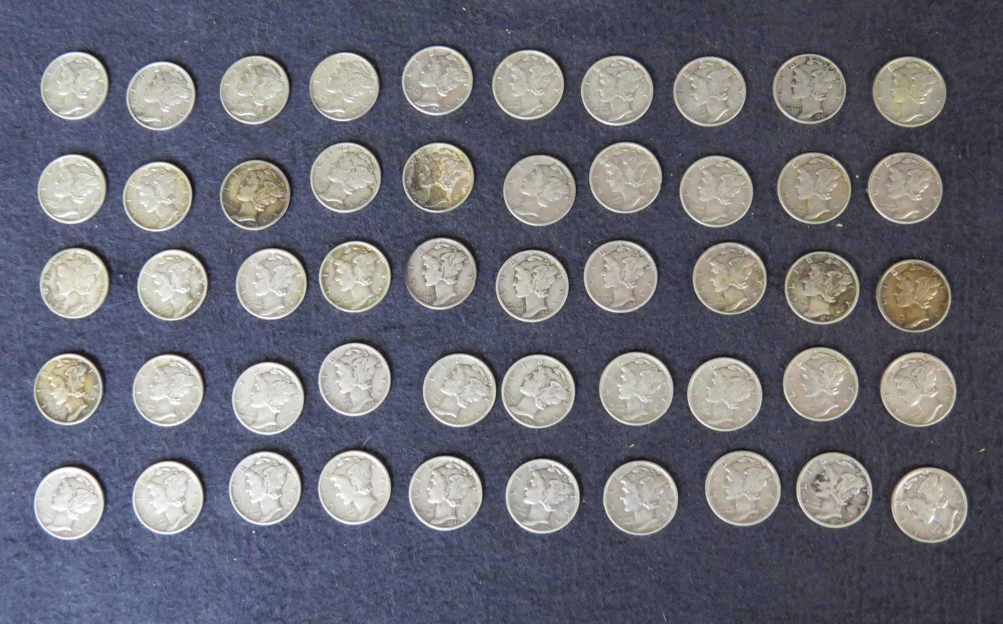Lot Of 50 Mercury Dimes, Dates Vary From 1941- 1943