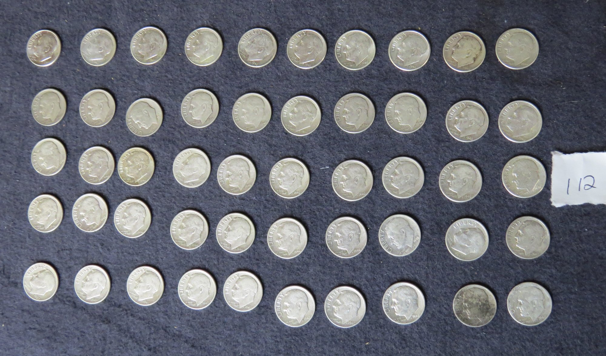 Lot Of 50 Silver Roosevelt Dimes, Thirty-eight 1936, Twelve 1947-49