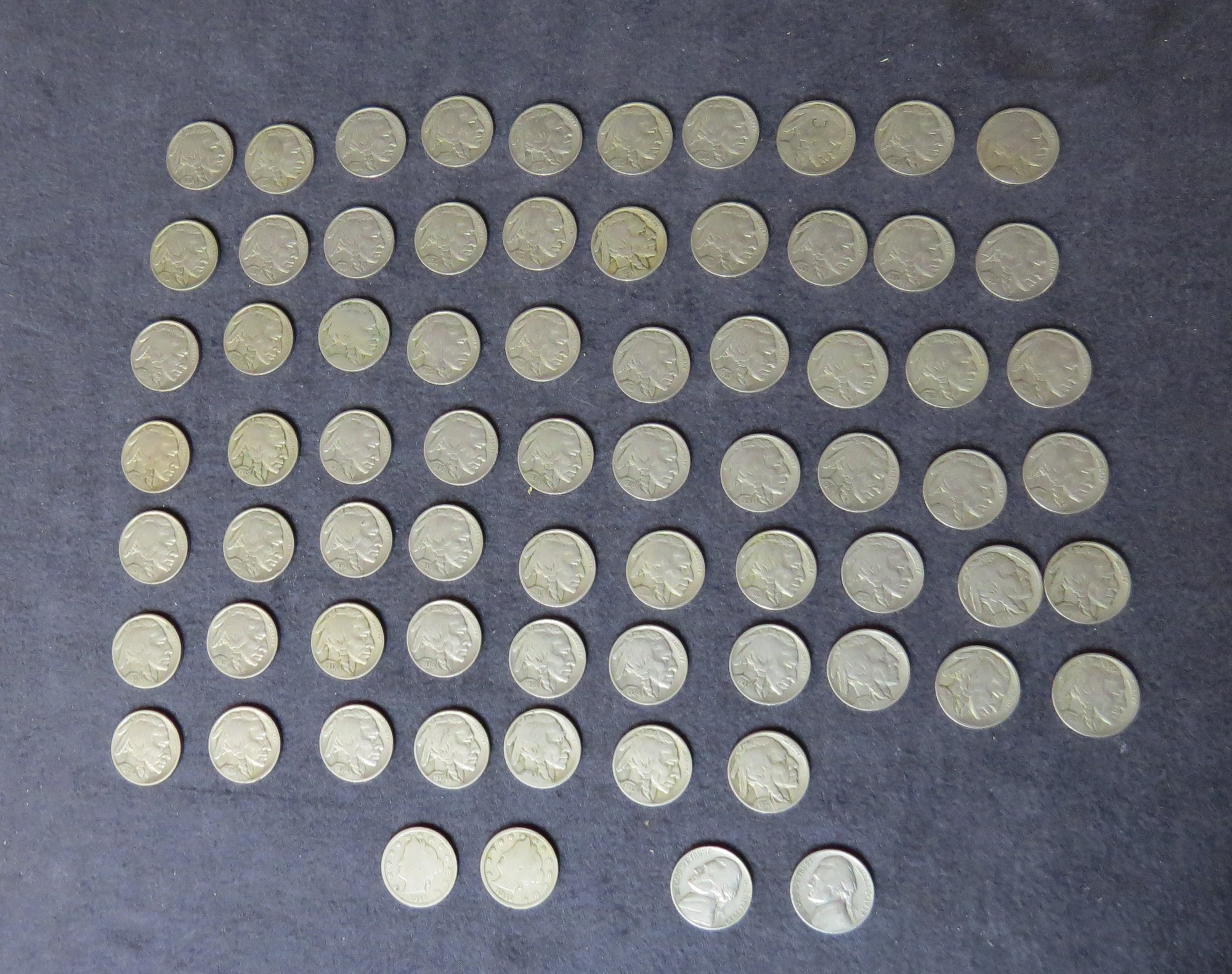 Lot Of 57 Buffalo Nickels, Two 1912 V Nickels, Two 39 Jeffersons