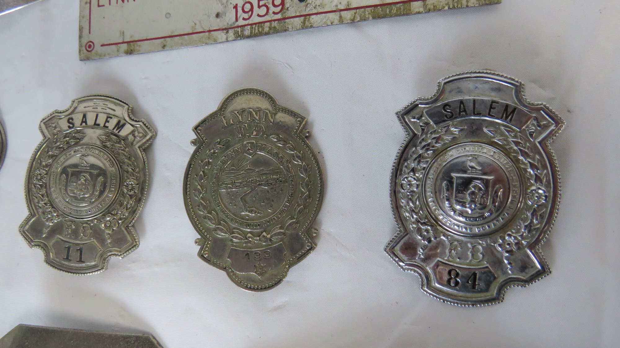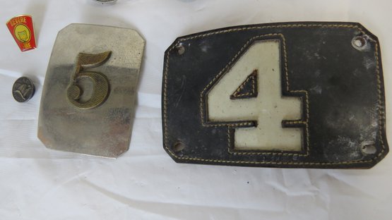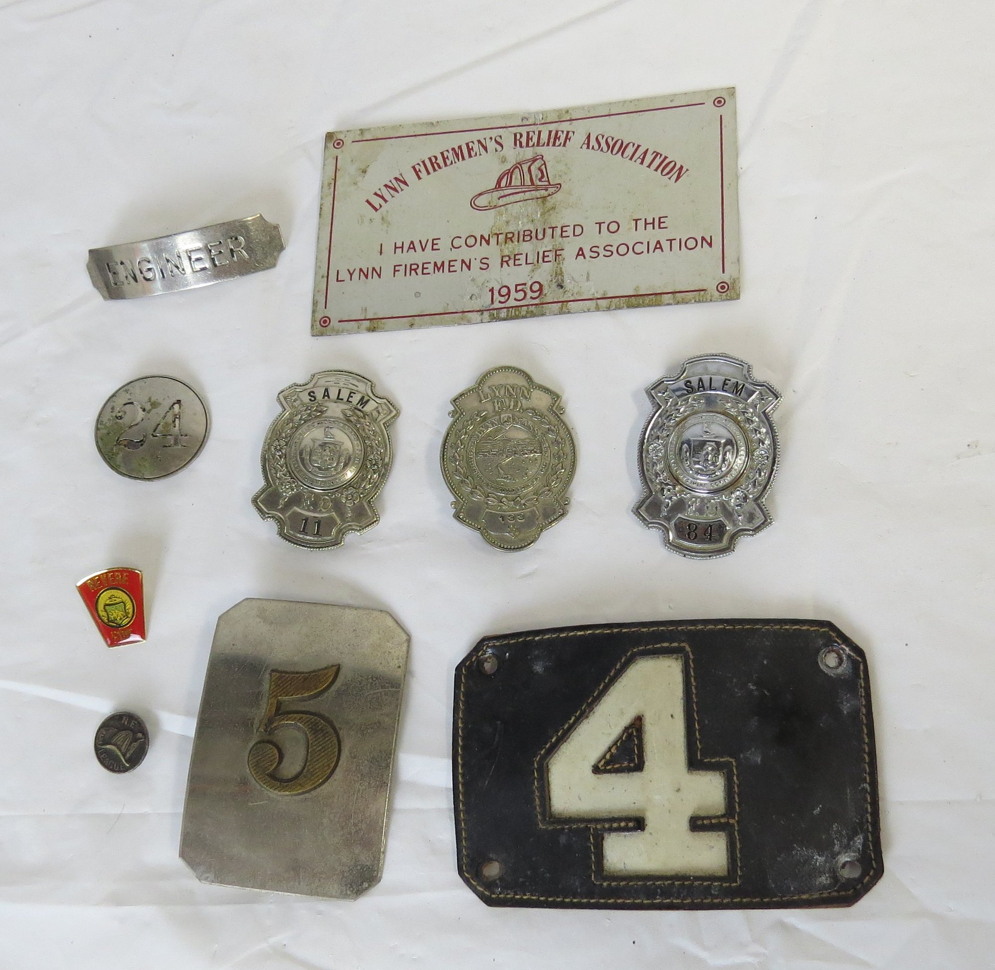 Lot Firemen’s badges, helmet number, pins
