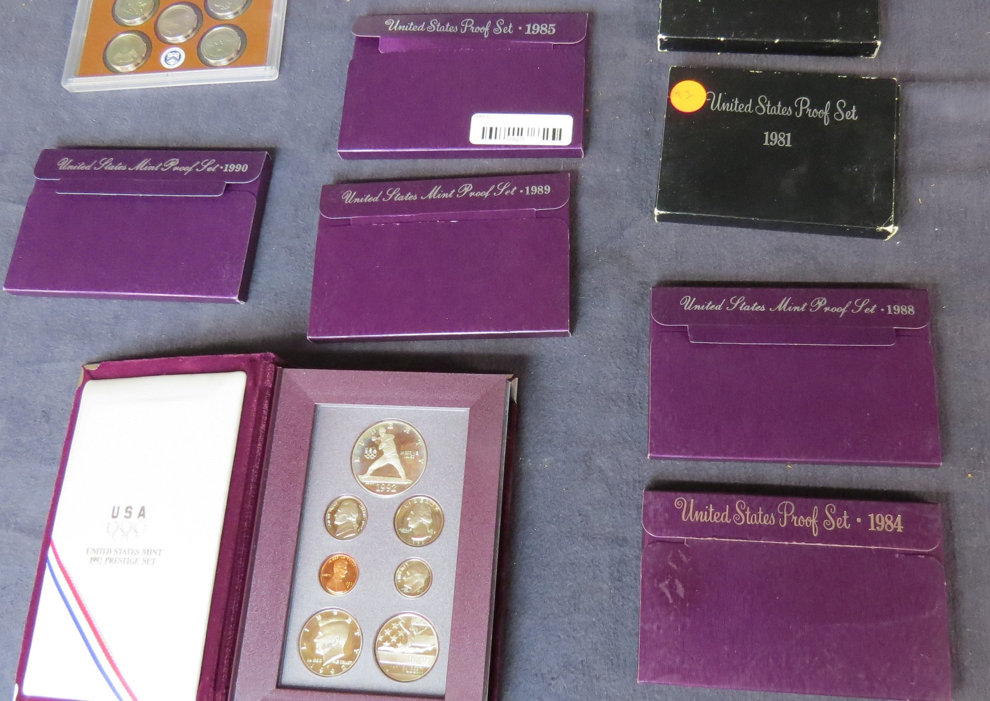 Lot proof sets in original boxes, 2012, 1990. Two 2010, 1992, 2007, 1987, 1985, 1989, 1982, 1980, 1981, 1988, 1984, 1983, four 2007 and two 2009