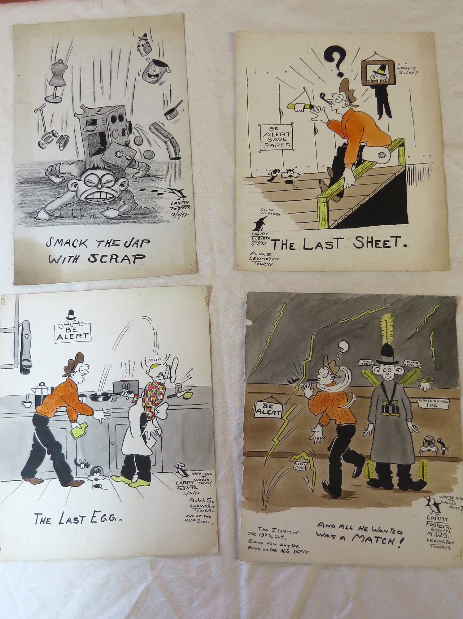 Lot apx. 70 WWII related watercolor illustrations by artist Larry Foster dated 1942