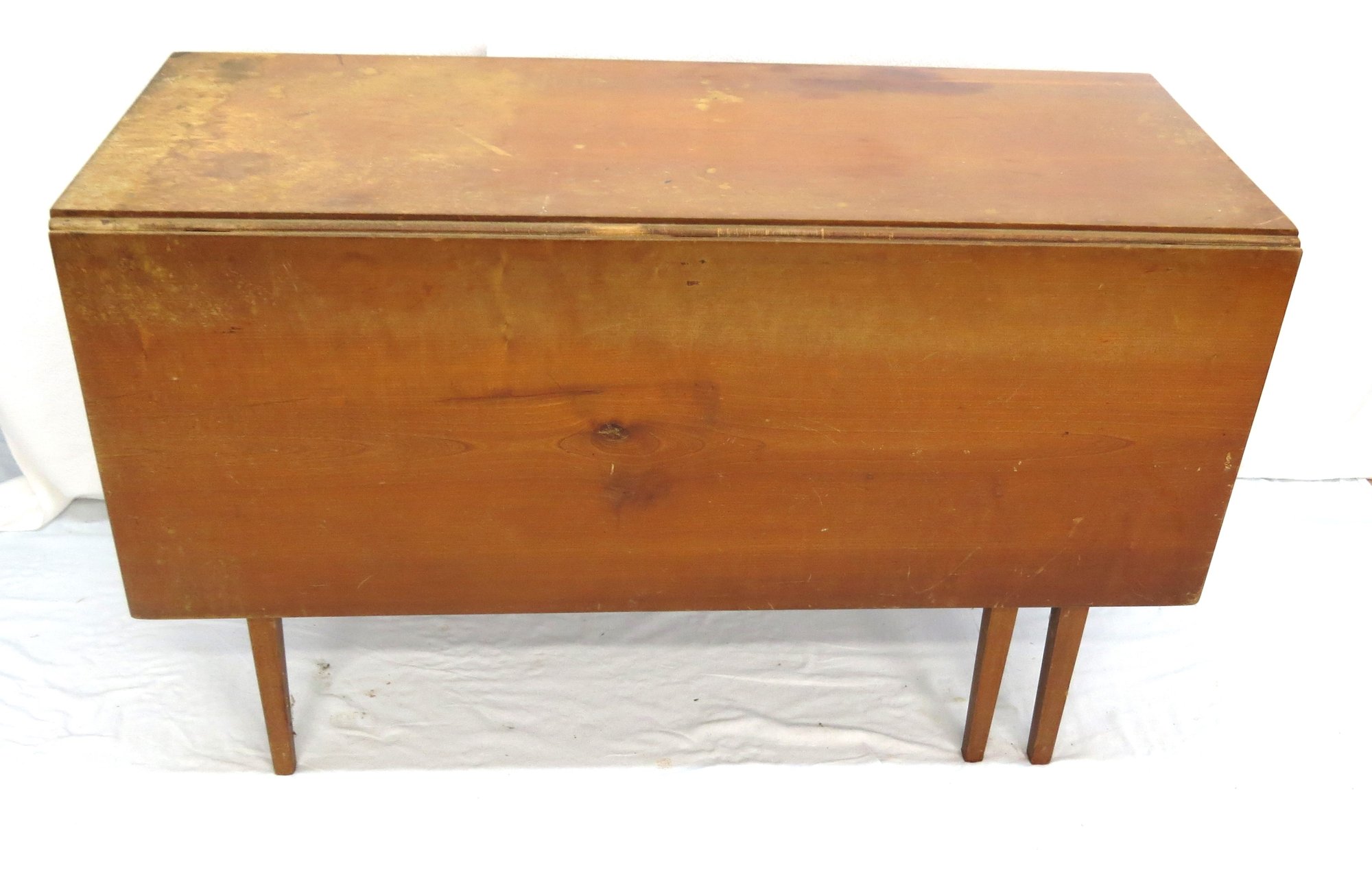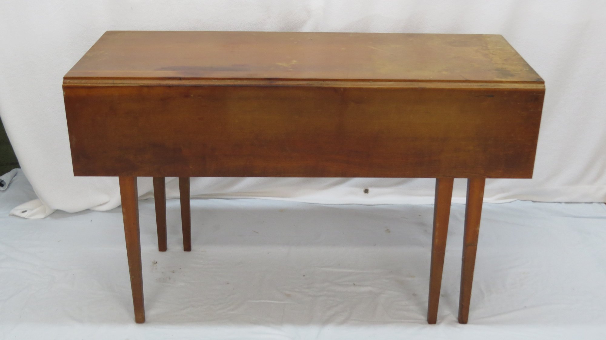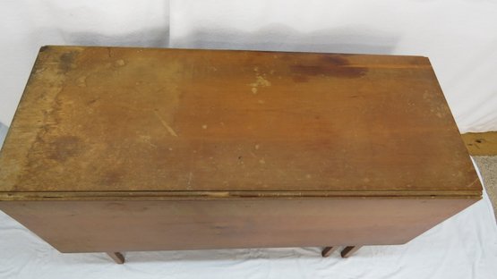 Notes: one leaf is in two pieces having come unglued, worn on one corner, 45" w. x 17" top x 17" leaves, x 28" h.