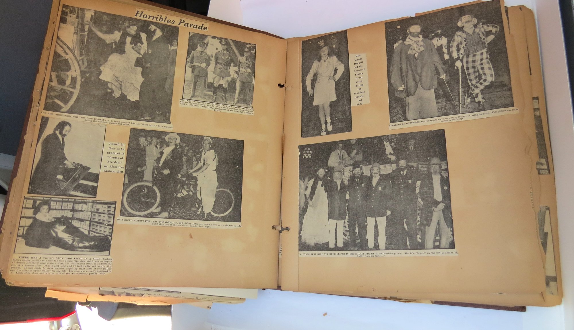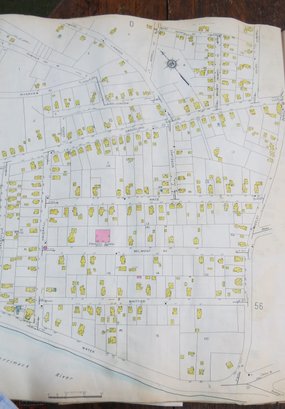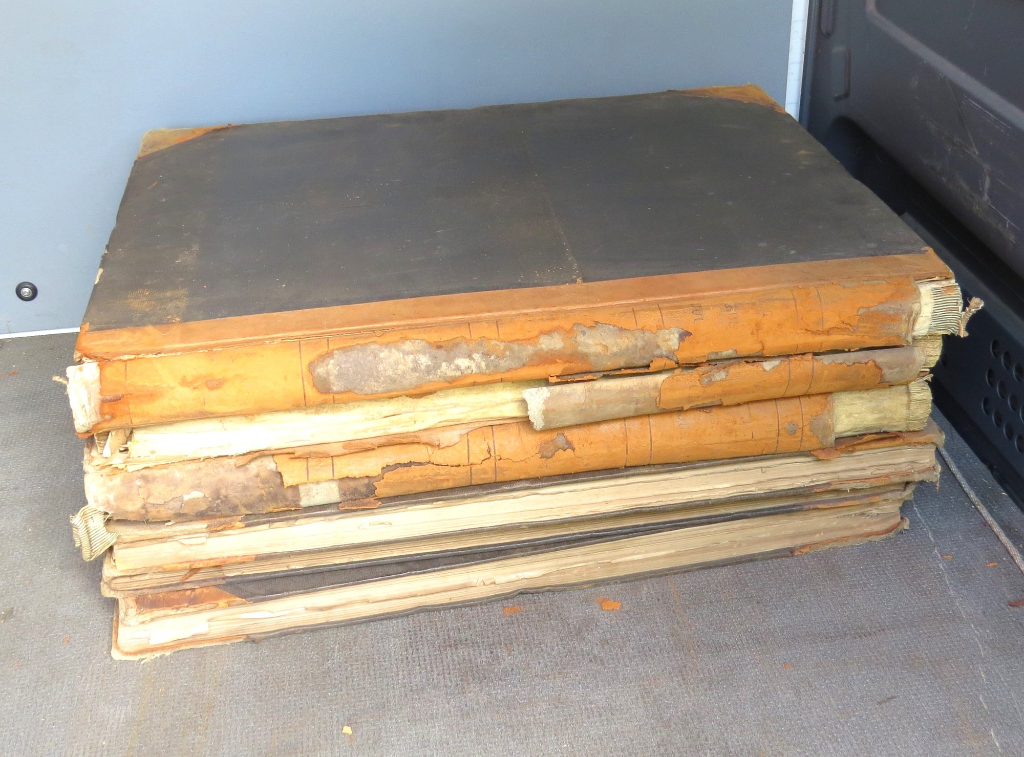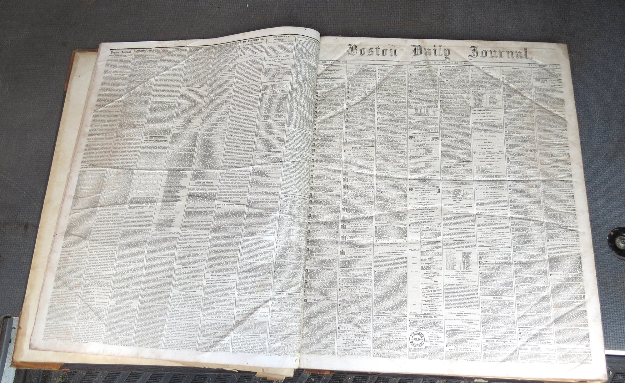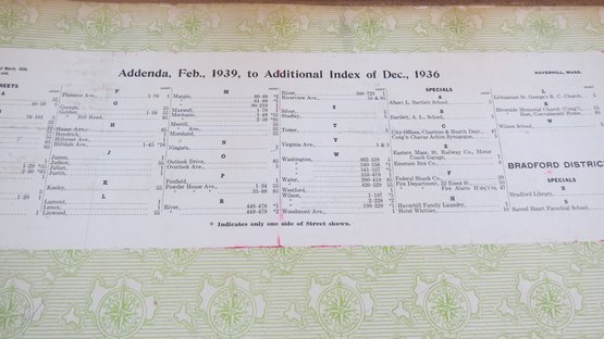 Old newspapers in large bindings, Road and plat maps of Haverhill MA 1930's bound in large book.