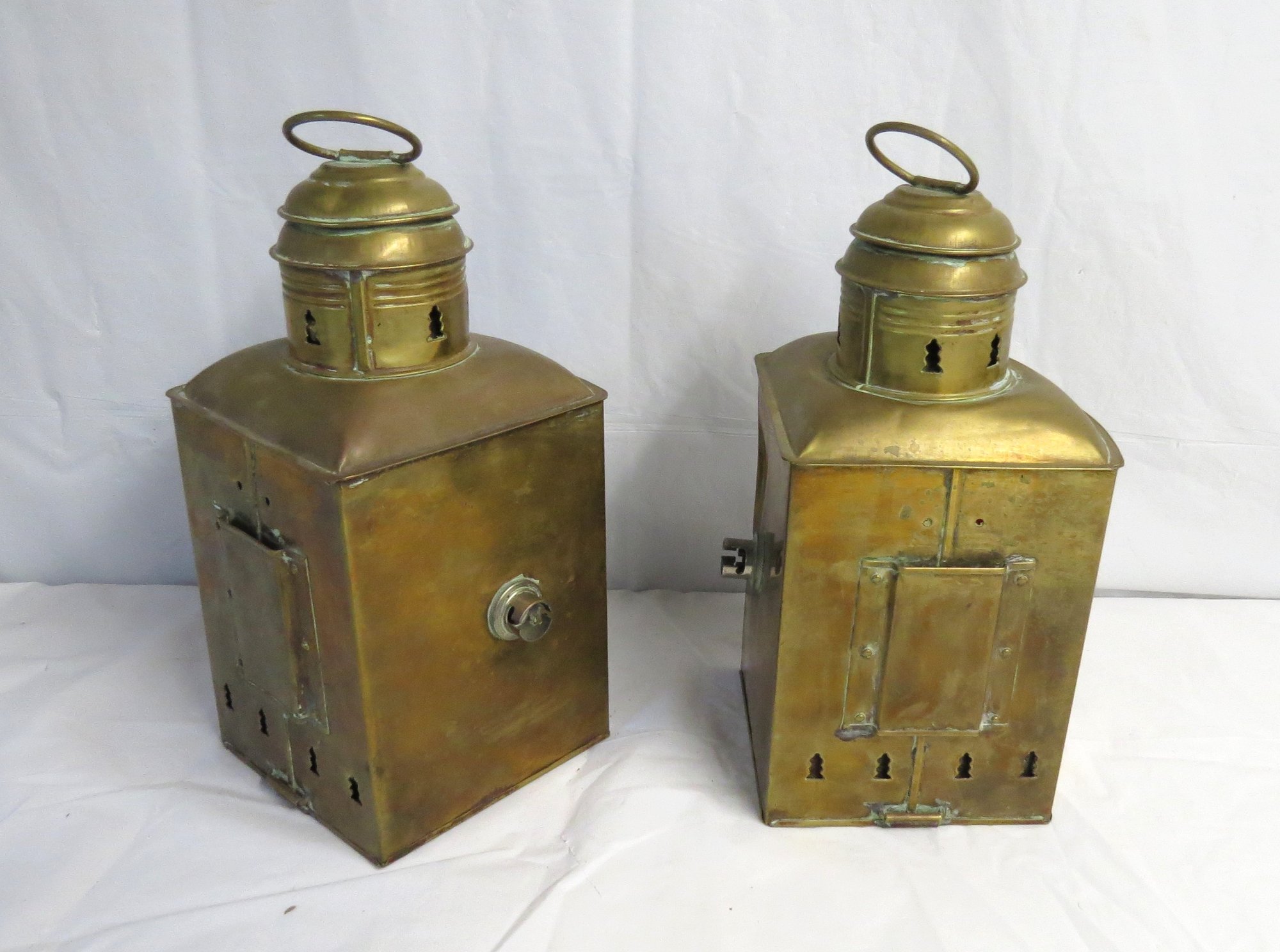 Port and Starboard brass nautical lamps, 10” h. x 5” d.