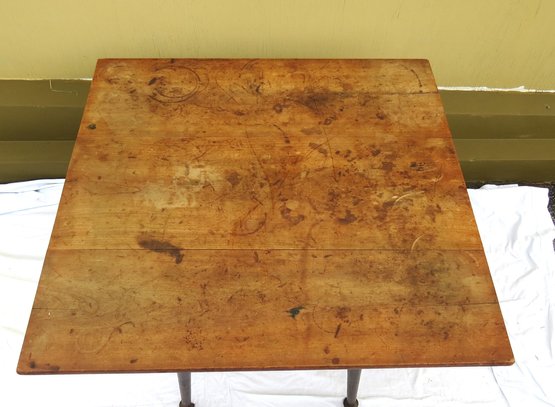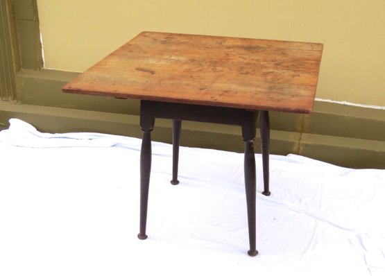 Queen Ann splay leg button foot table with old replaced top from a cherry Queen Ann tilt top table, top 31 ¼” x 30 3/4” maple, 26 ½” h.