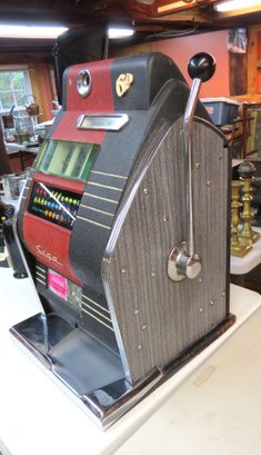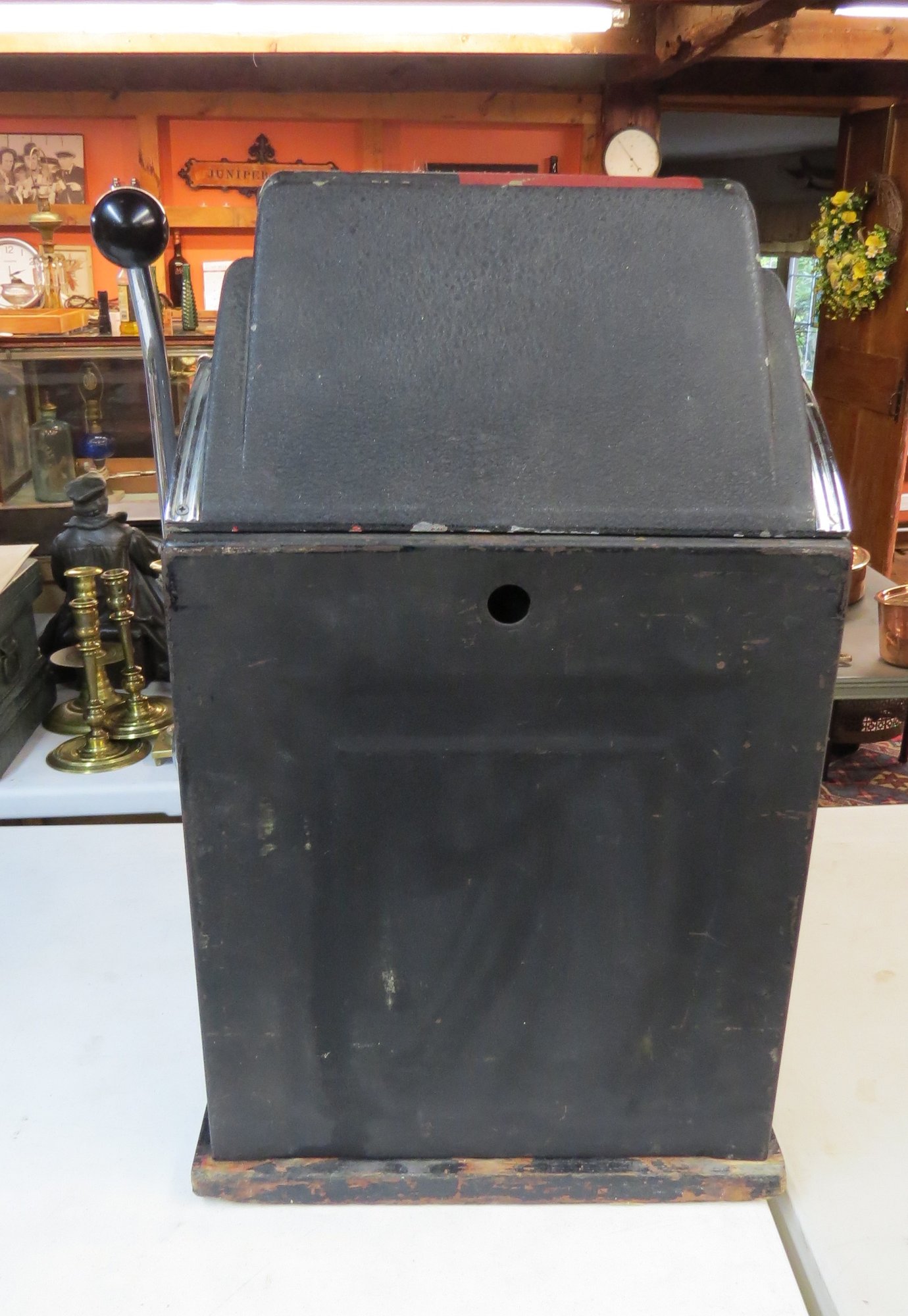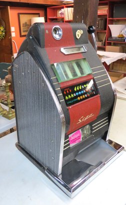 Sega 10 cent slot machine in working condition with key, 27” h. x 18” d, 16” w.