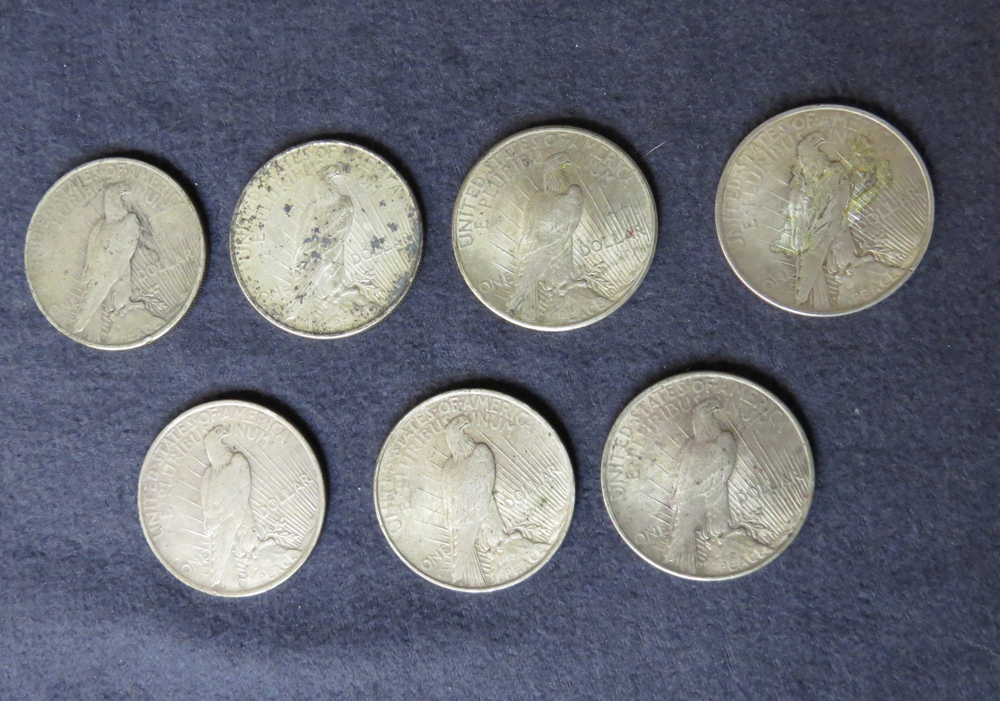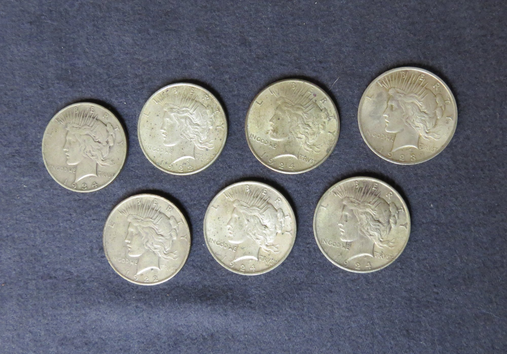 Lot of 7 Peace dollars 1934-D, 1922, 1924, 1923, 1922, 1924. 1924