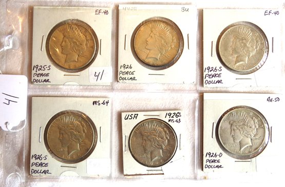 Six Peace Dollars, 1925-S, 1926, 1926-S, 1926-S, 1926-S, 1926-D