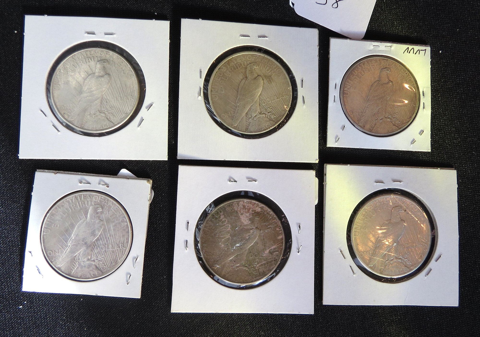 Six Peace Dollars1927-S, 1927-D, 1927, 1928-S, 1928-S, 1928