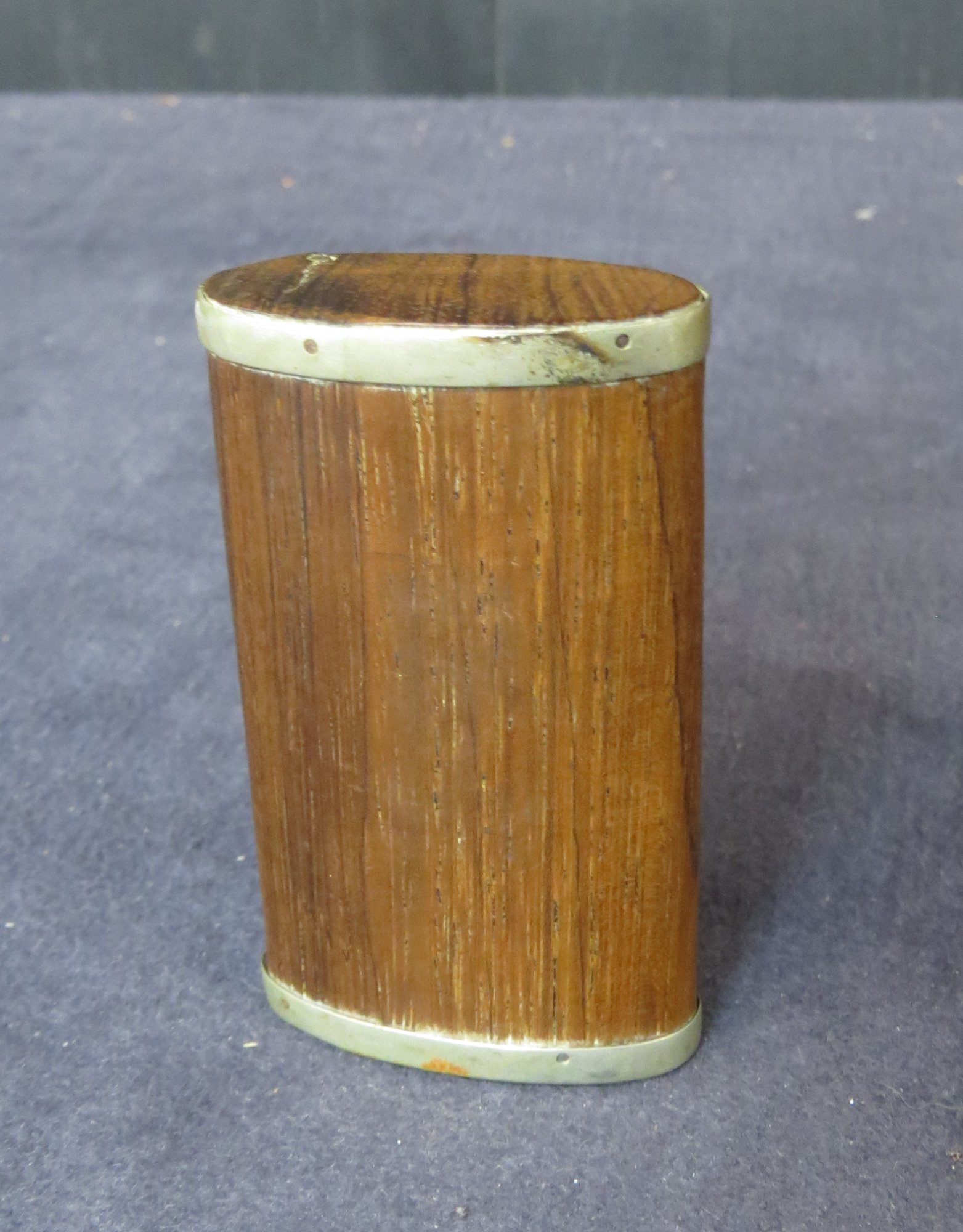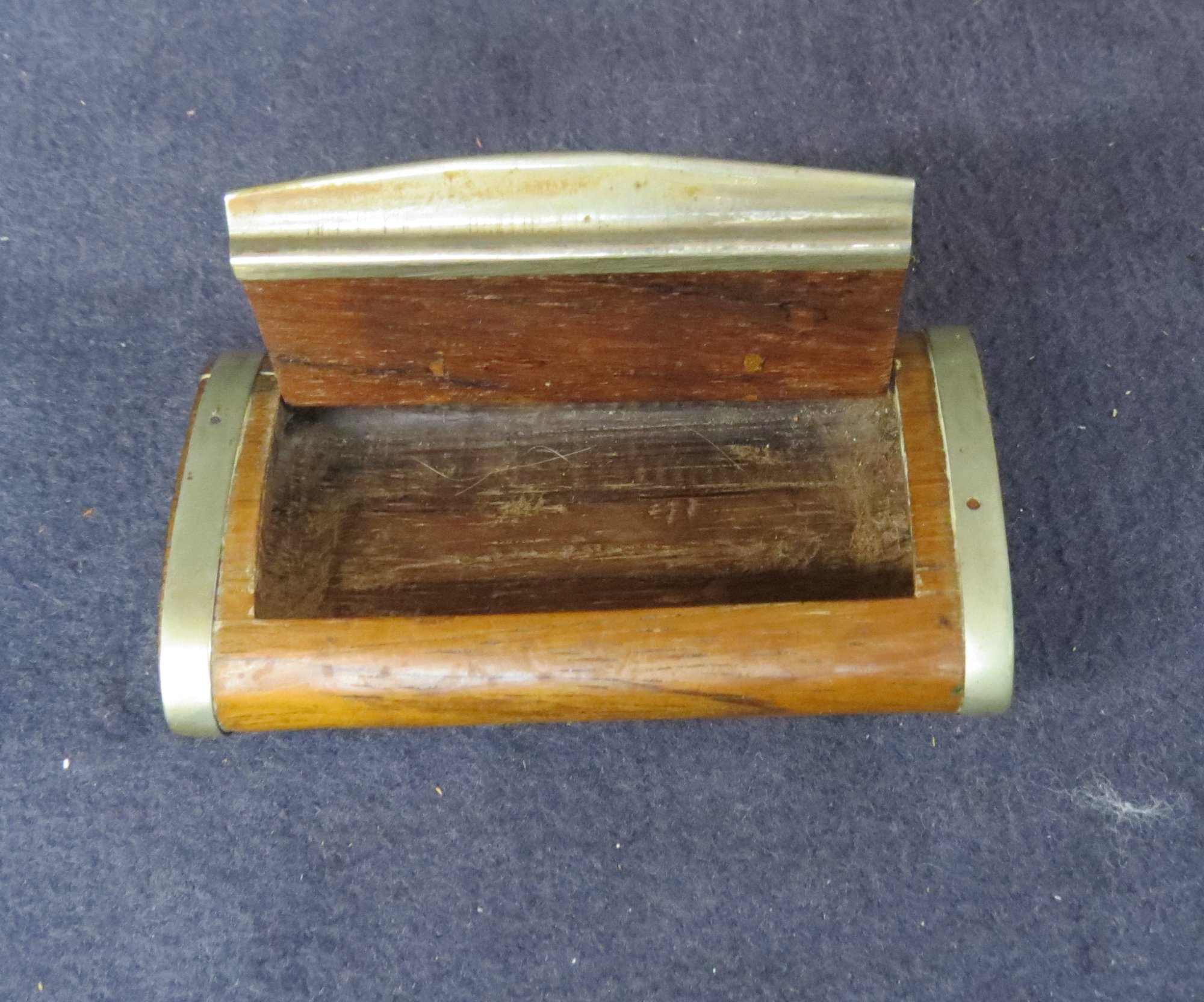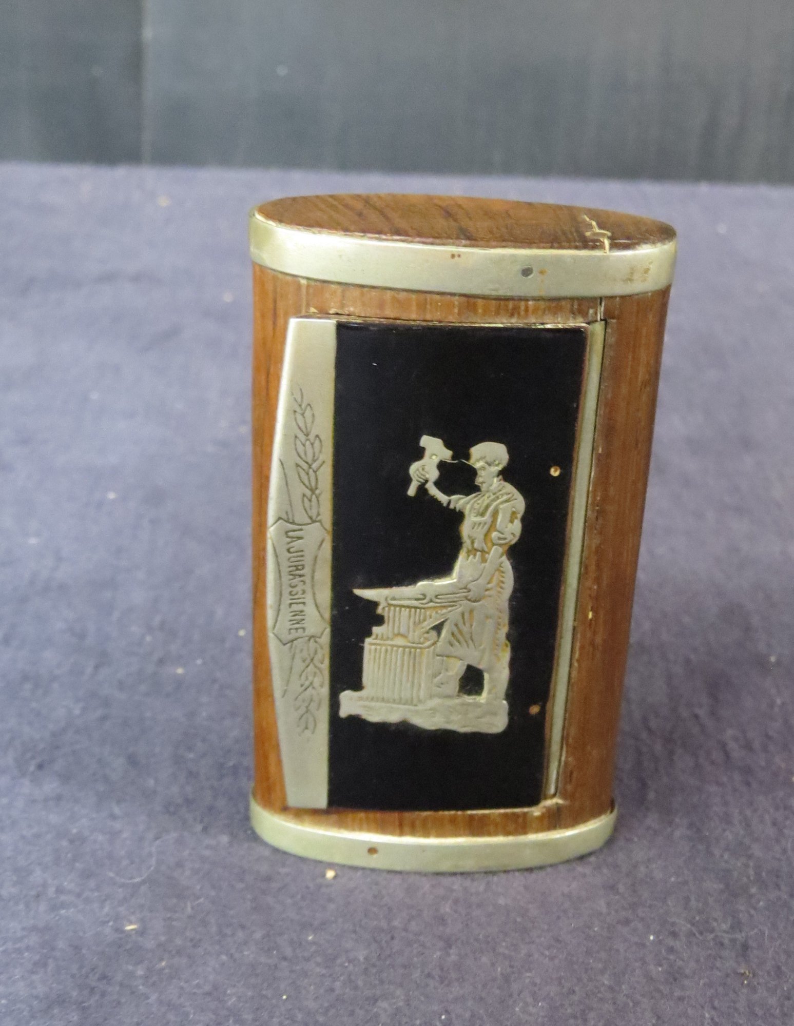 Snuff box with blacksmith hammering anvil on lid. 3 1/4" x 2" x 7/8" good condition