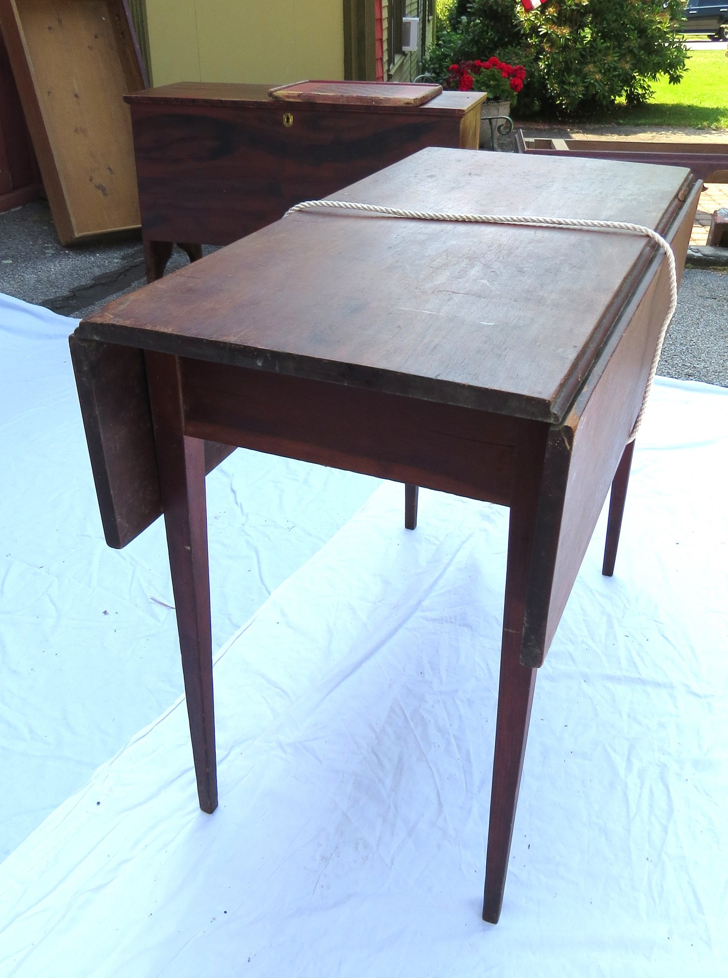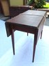 Tapered leg cherry drop-leaf table 36” w. x 17” d. x 9” leaves x 28 ½” h.