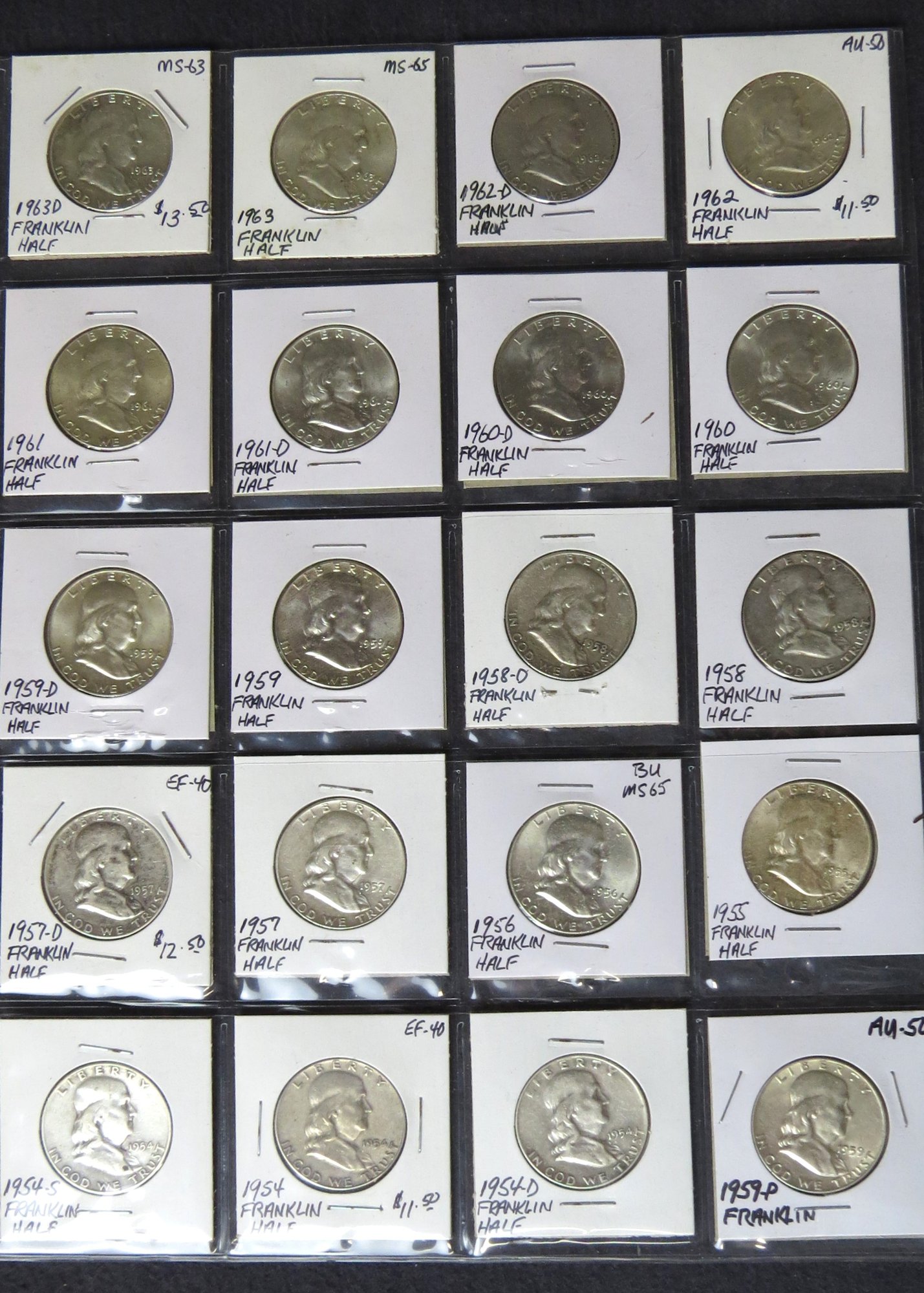 1963-D, 1963, 1962-D, 1962, 1961, 1961-D, 1960-D, 1960, 1959-D, 1959, 1958-D, 1958, 1957-D, 1957, 1956, 1955, 1954-S, 1954, 1954-D, 1959-P, condition to be determined by the buyer