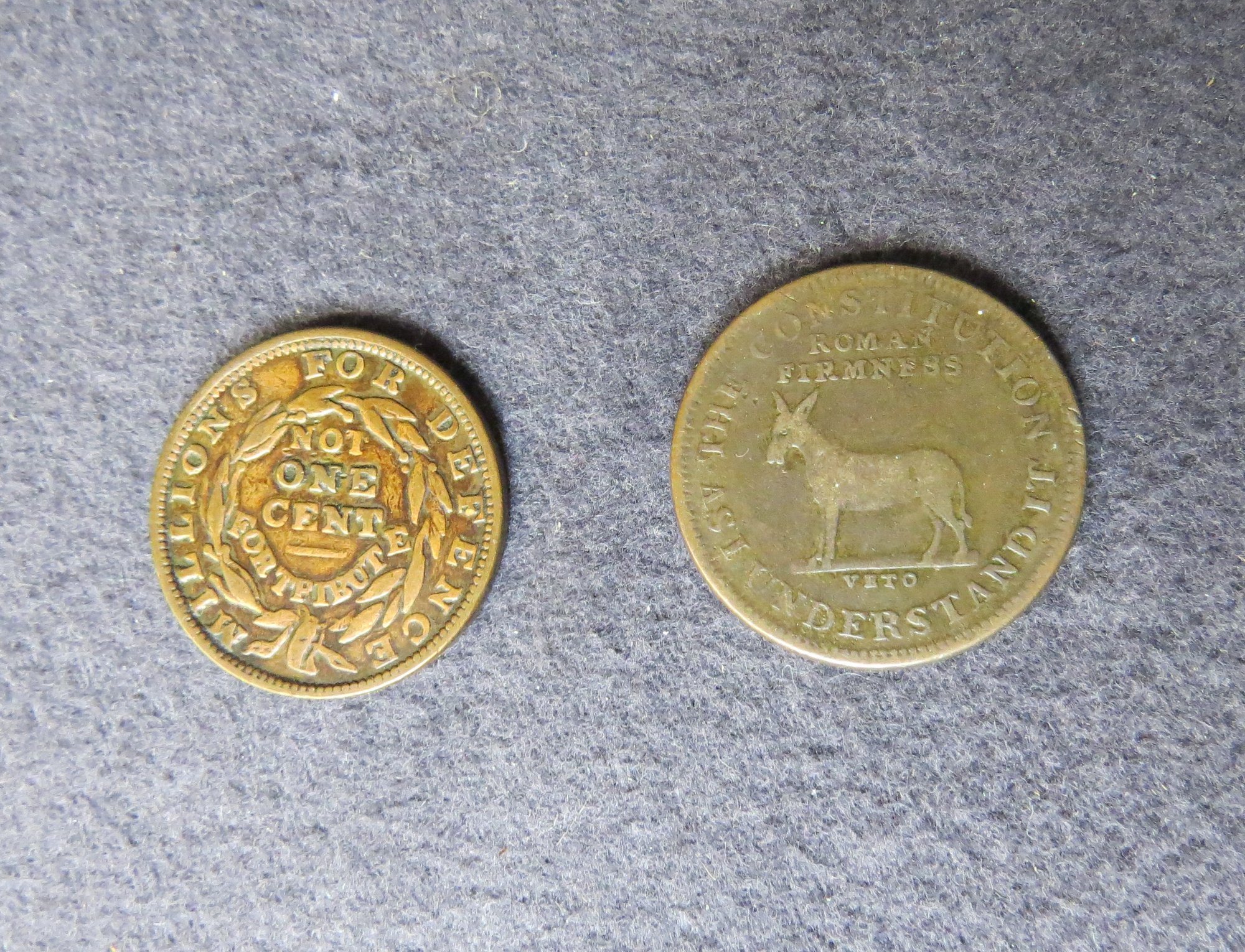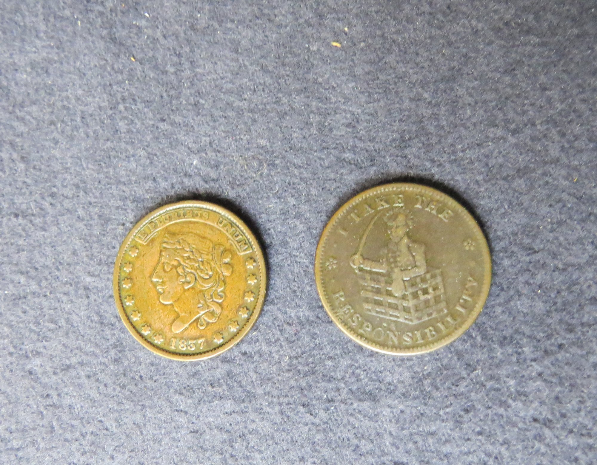 177. Two Hard Times Tokens, 1837 millions for Defense and I take responsibility