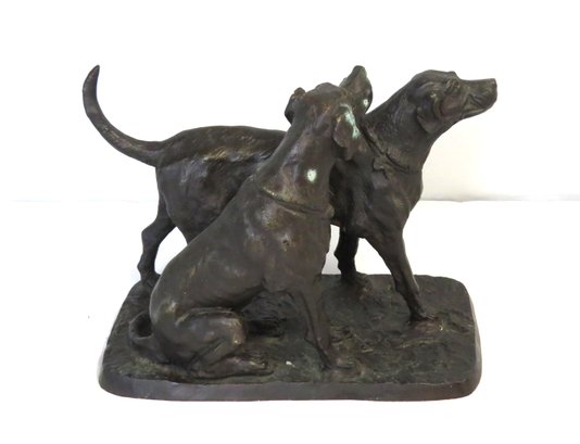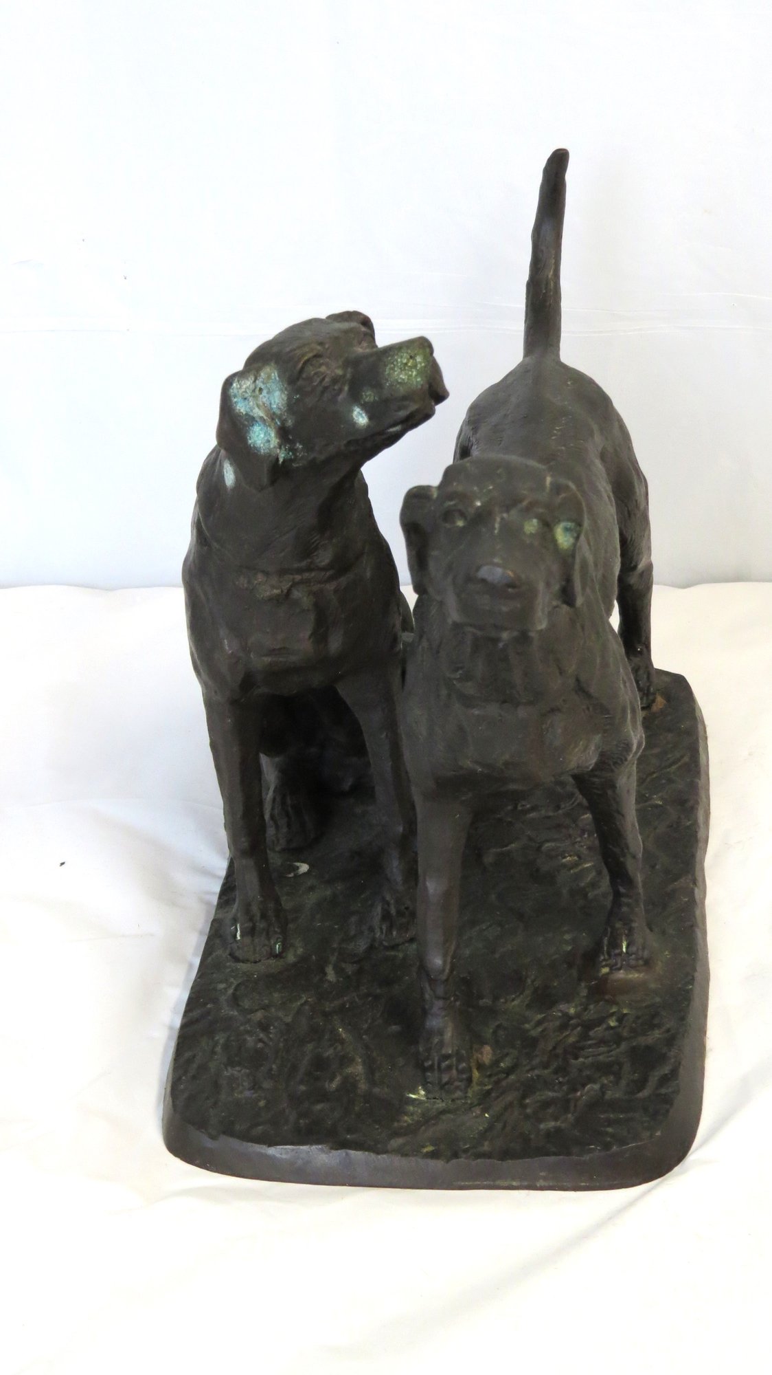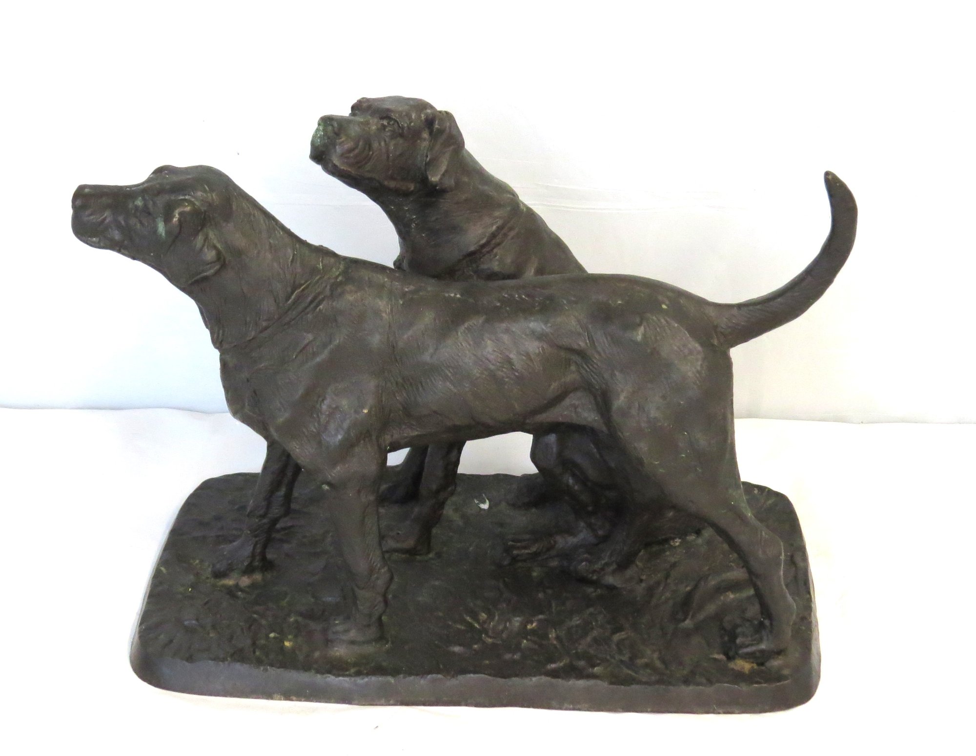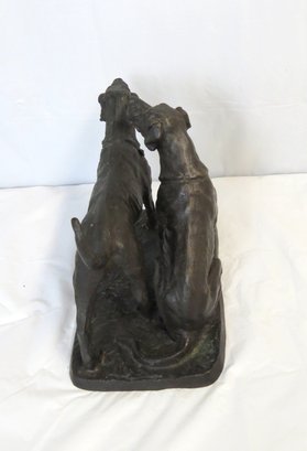 Unsigned bronze of two dogs, 10” x 5” w. x 7” h.