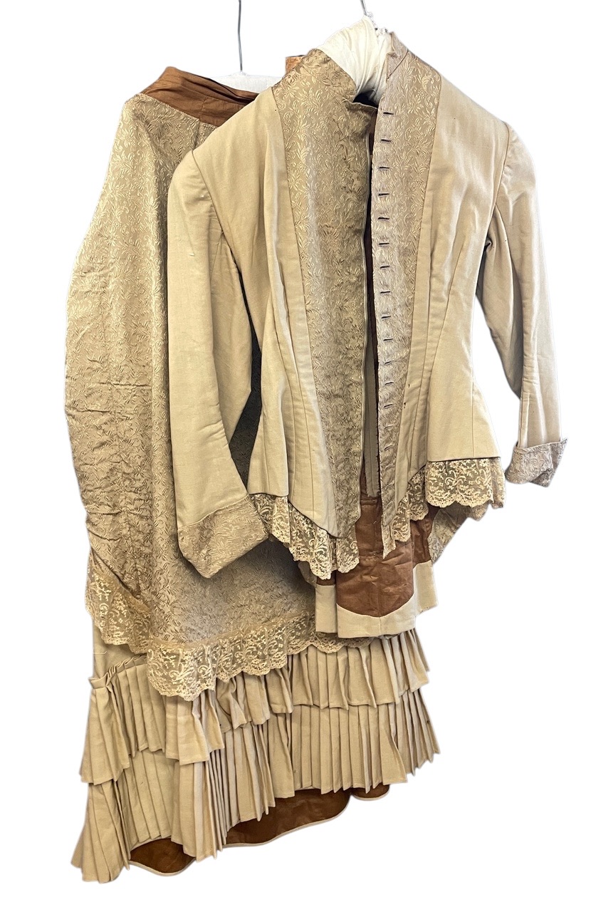 with lace and ruffle trim, brocade accents and sleeve trim