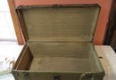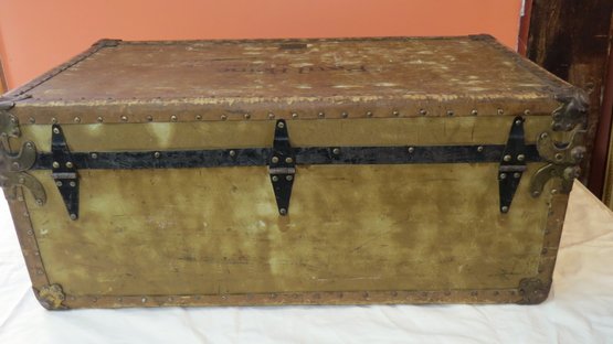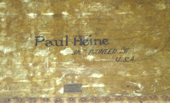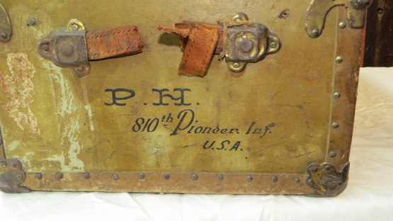 WWI footlocker owned by Paul Heine, 810th Pioneer Infantry U.S.A. (black Infantry) has brass tag Gorman’s luggage makers Baltimore MD, 31” x 17” x 13” h.
