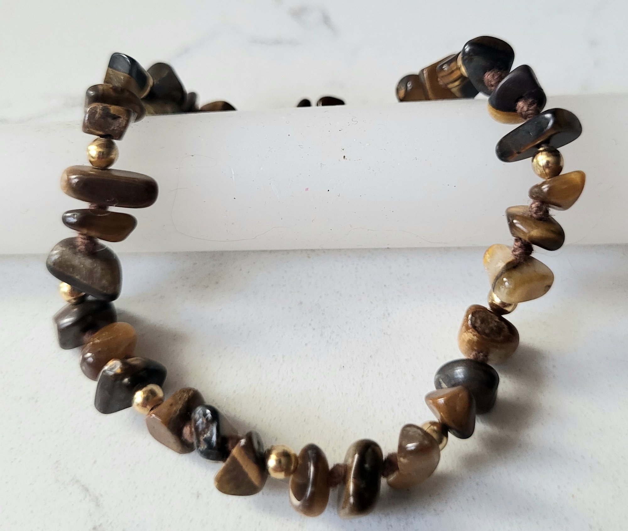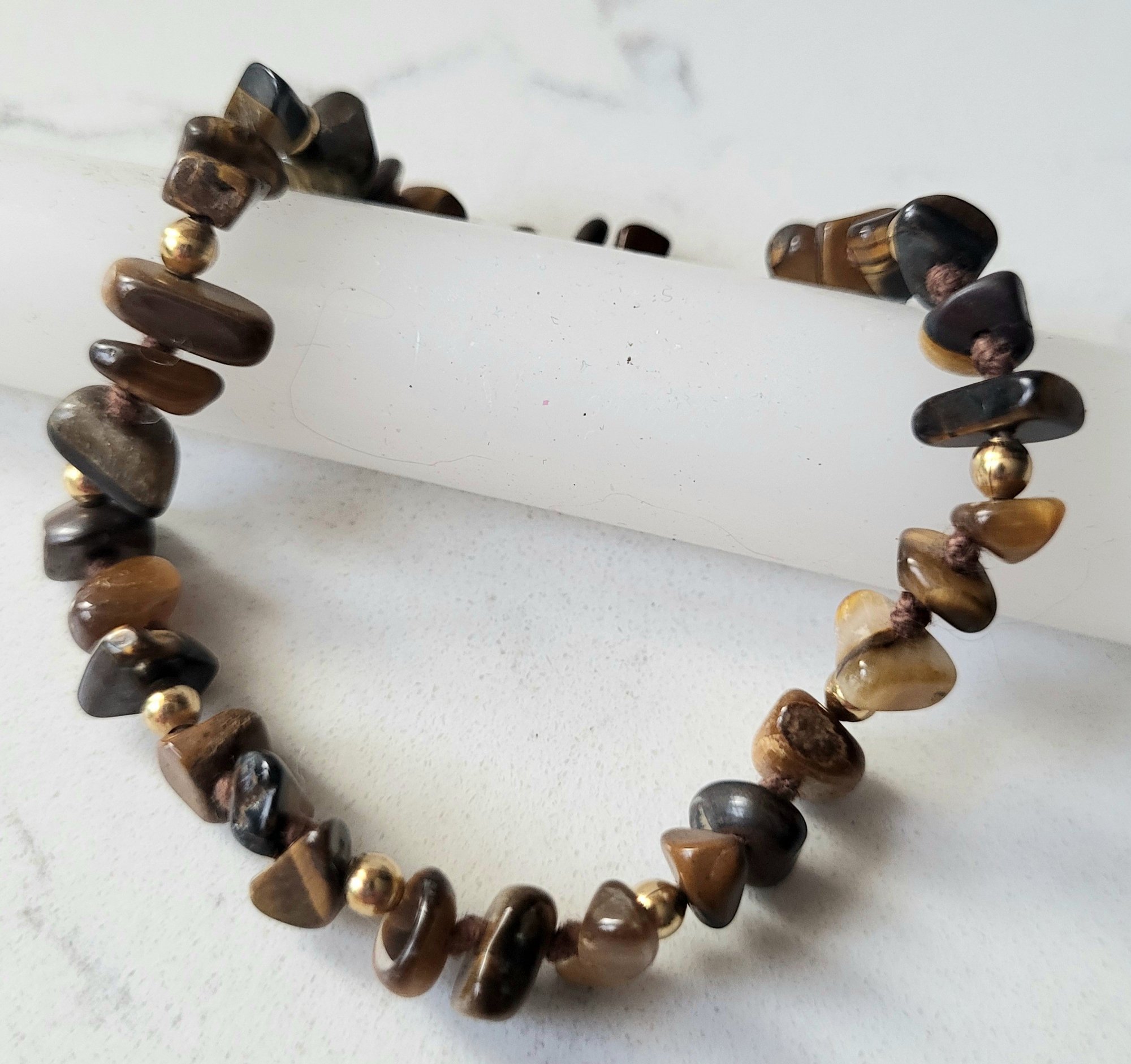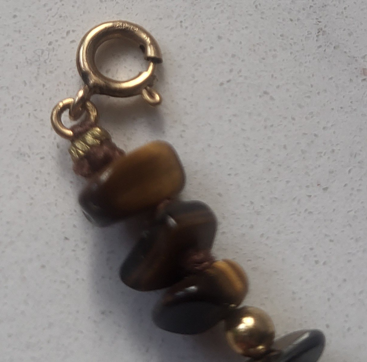VINTAGE MARKED "14KGF" TIGER'S EYE GEMSTONES BRACELET--7"L