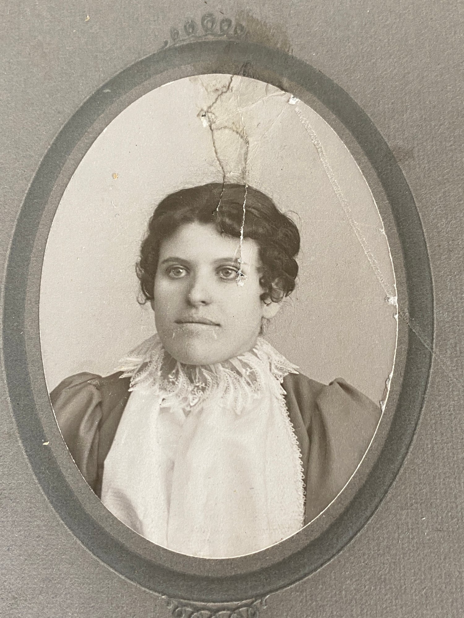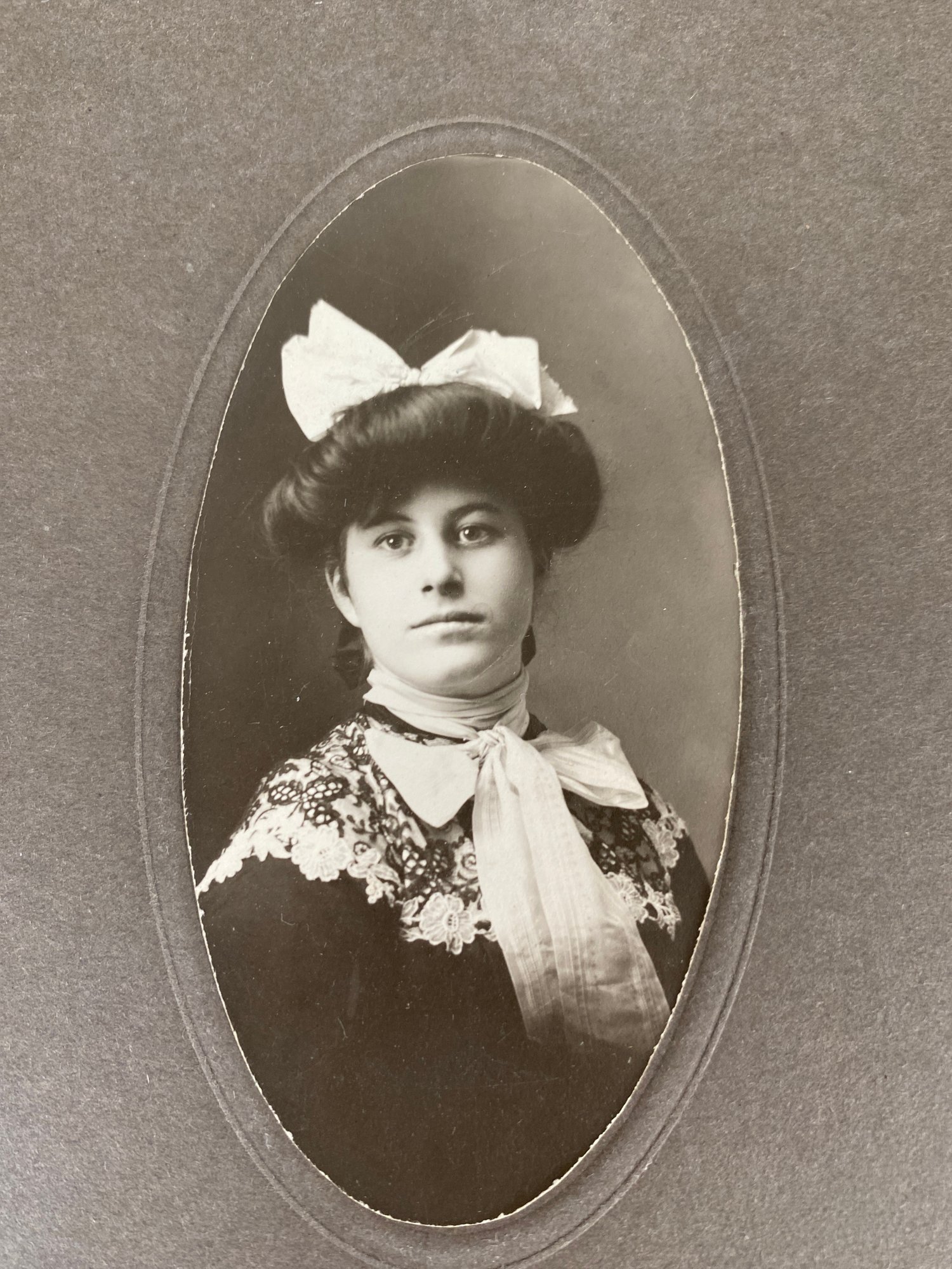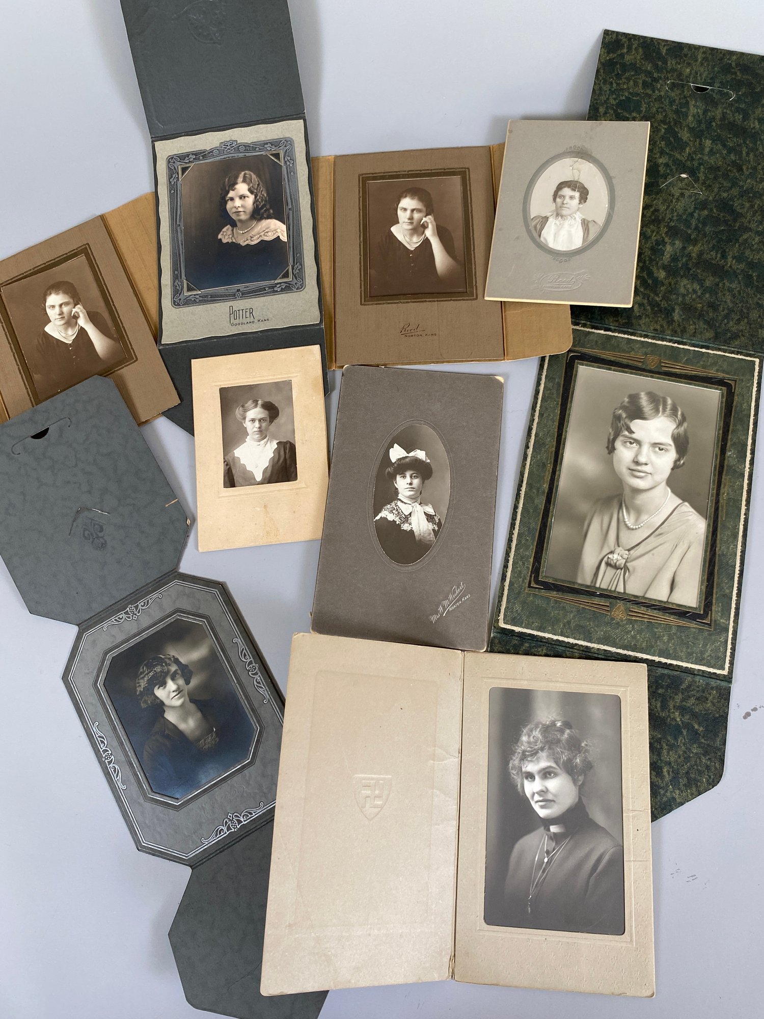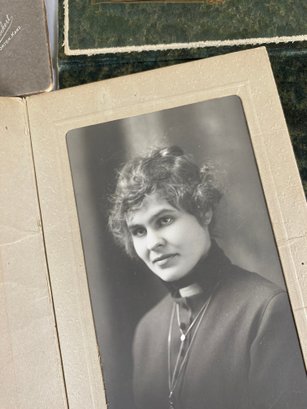 The photos are in good condition and have very good details. The largest one measures 5-5/8" x 8-1/2". Several have names written on the back of the cardboard holder.