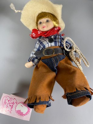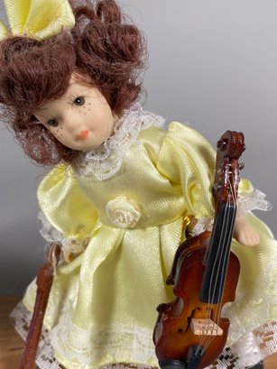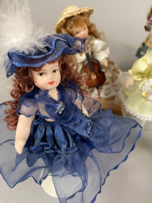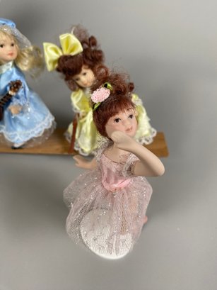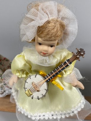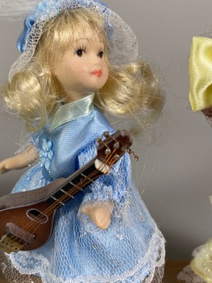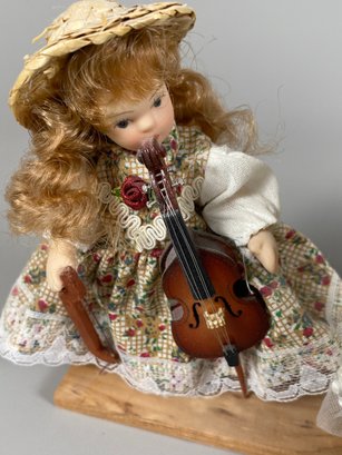 The dolls are in good condition. They just need a light dusting. The ballerina is 5-1/2" tall and the western dolls have 'Cameo Kids' labels. The cases for the musical instruments are included.