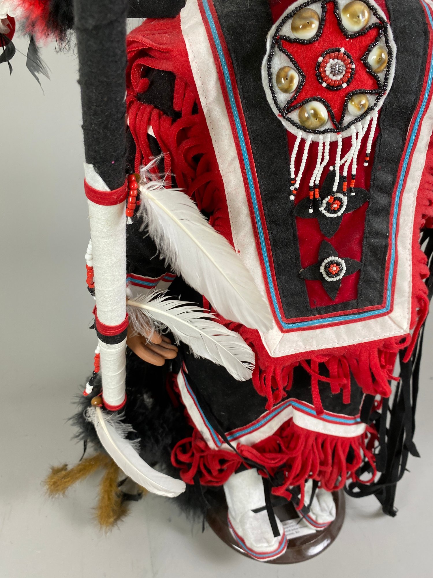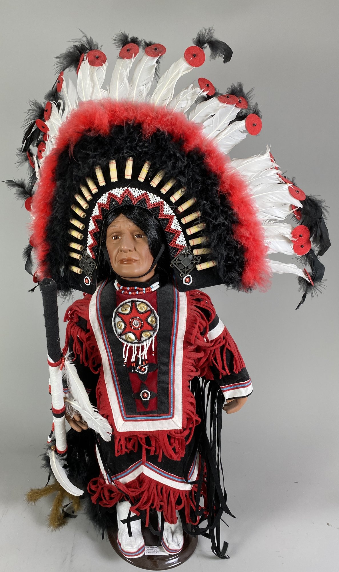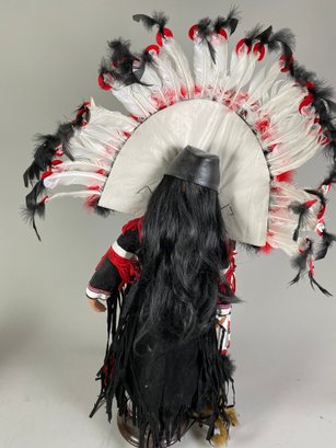 The doll is in very good condition, although some of the feathers on the headdress are frayed. The doll is approximately 34" tall.