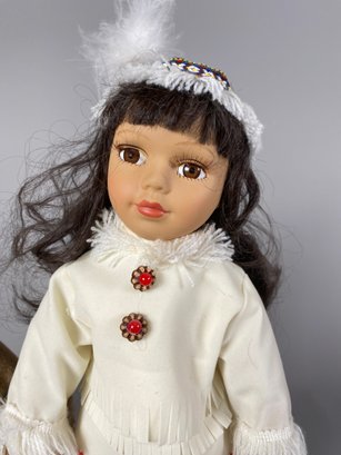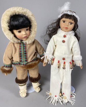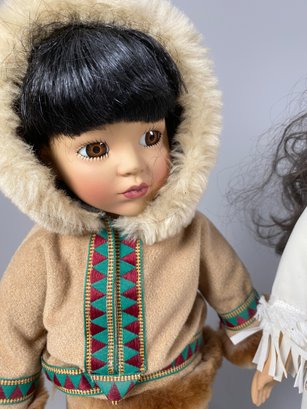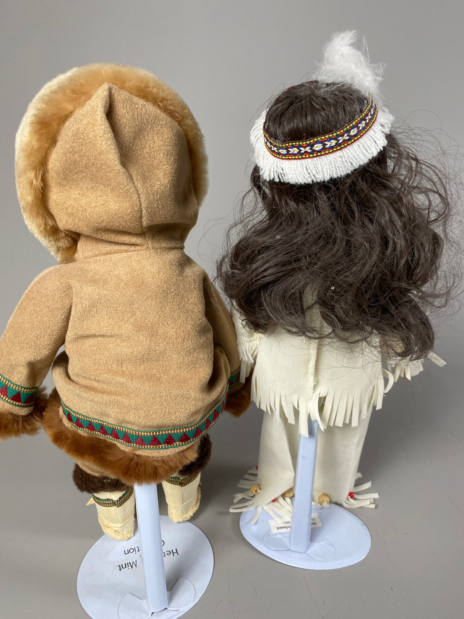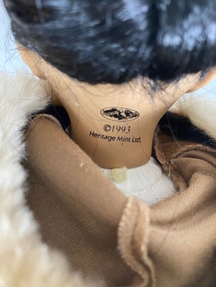 The dolls are in very good condition. The largest is approximately 15-1/2" tall. One is marked Heritage Mint and both have doll stands.