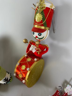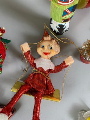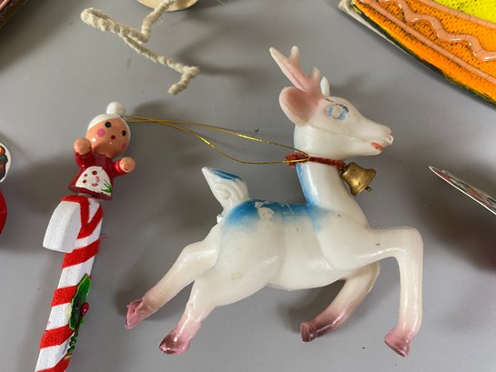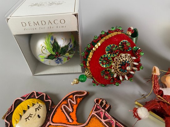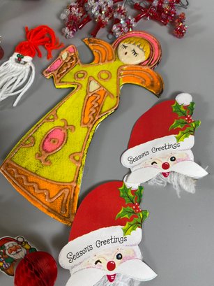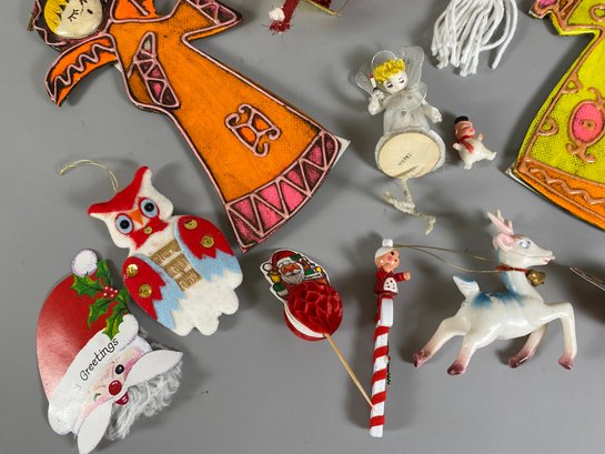 All pieces are in good, used condition. All appear to be vintage except for the Demdaco ornament. The two large angels measure about 10-1/4" tall.
