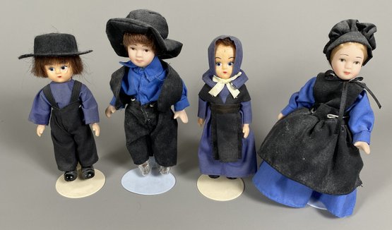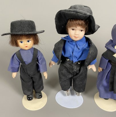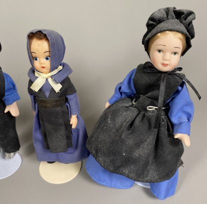 All dolls are in very good condition with no damage, although they may need to be dusted. The tallest doll is 6-1/2" tall. We think the adults are porcelain, and the children are plastic.