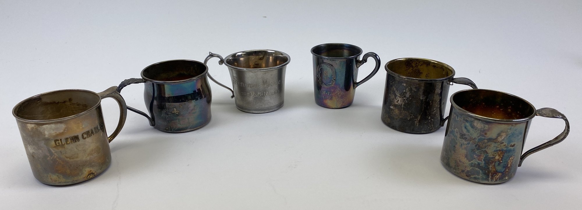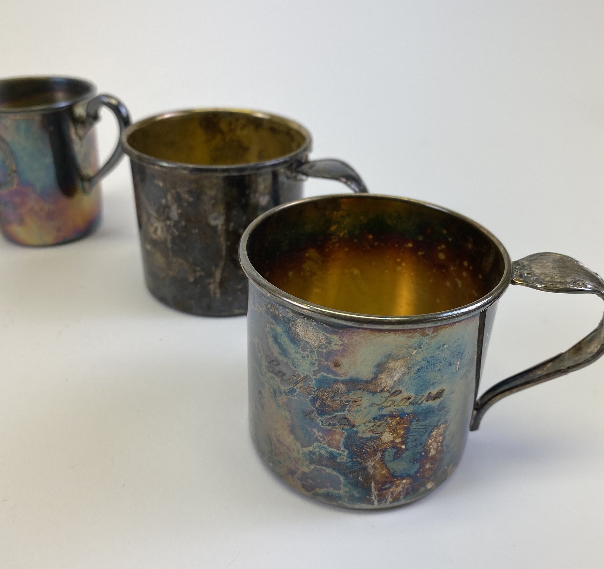 The cups are in good condition, although they are tarnished. The tallest cup is 2-1/2" tall. At least two of the cups are by Community, and one is by Oneida.