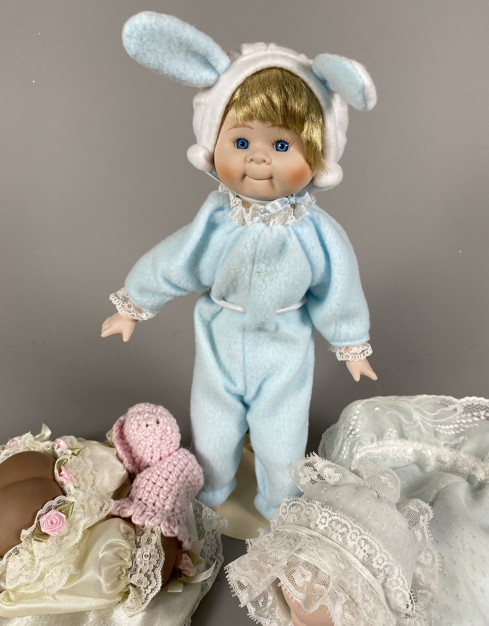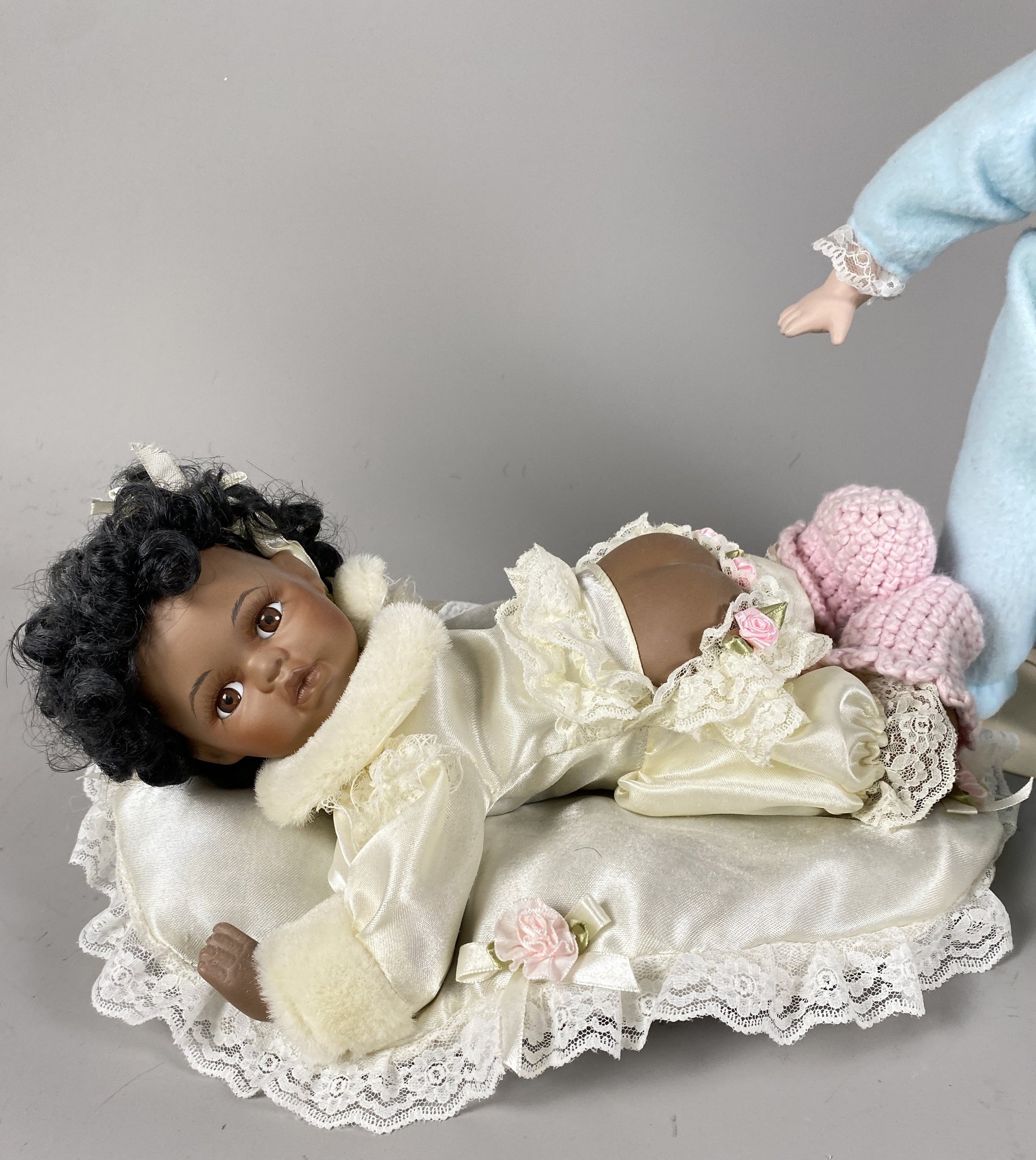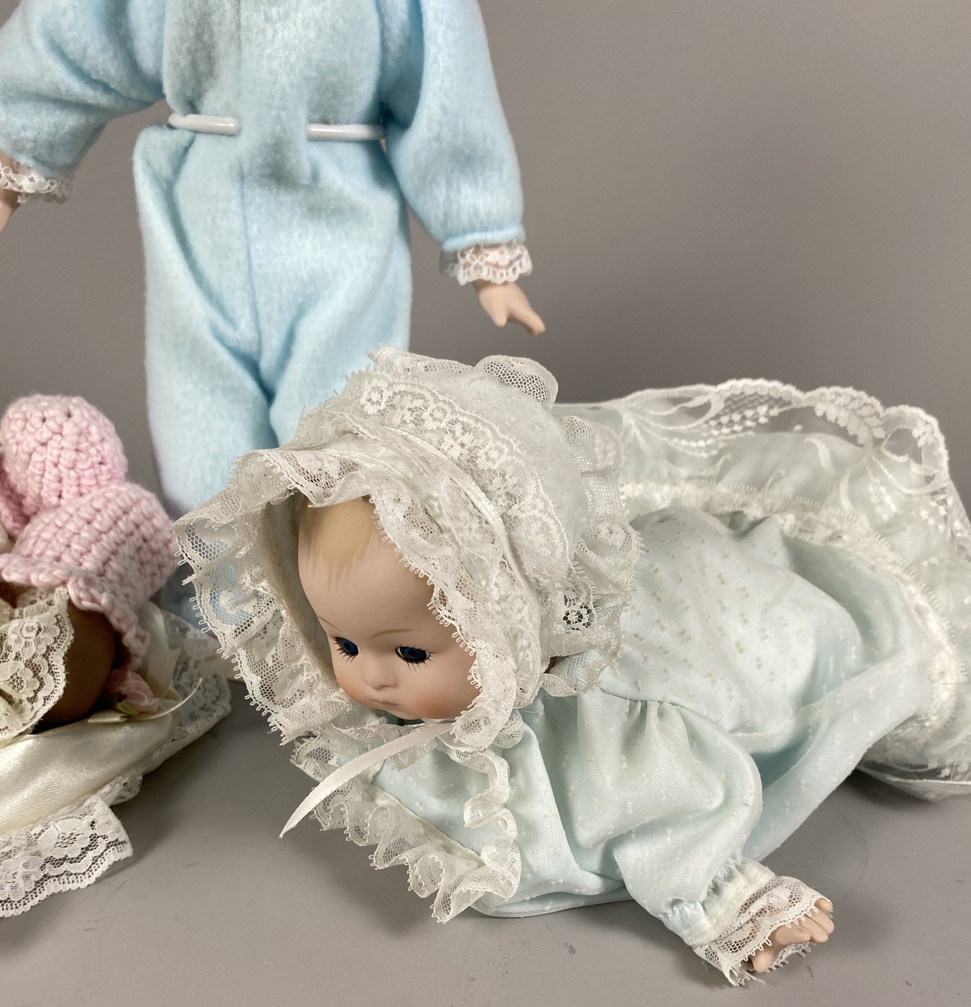 The dolls are in very good condition. The standing doll is approximately 14-1/2" tall.