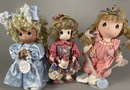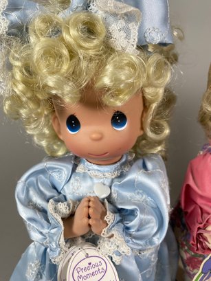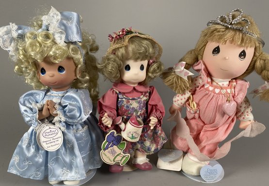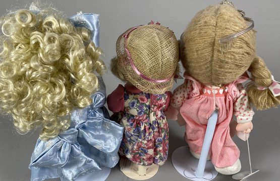 The dolls are in very good condition, although they need a bit of light dusting. The tallest one is approximately 14-1/2" tall. They all have stands.