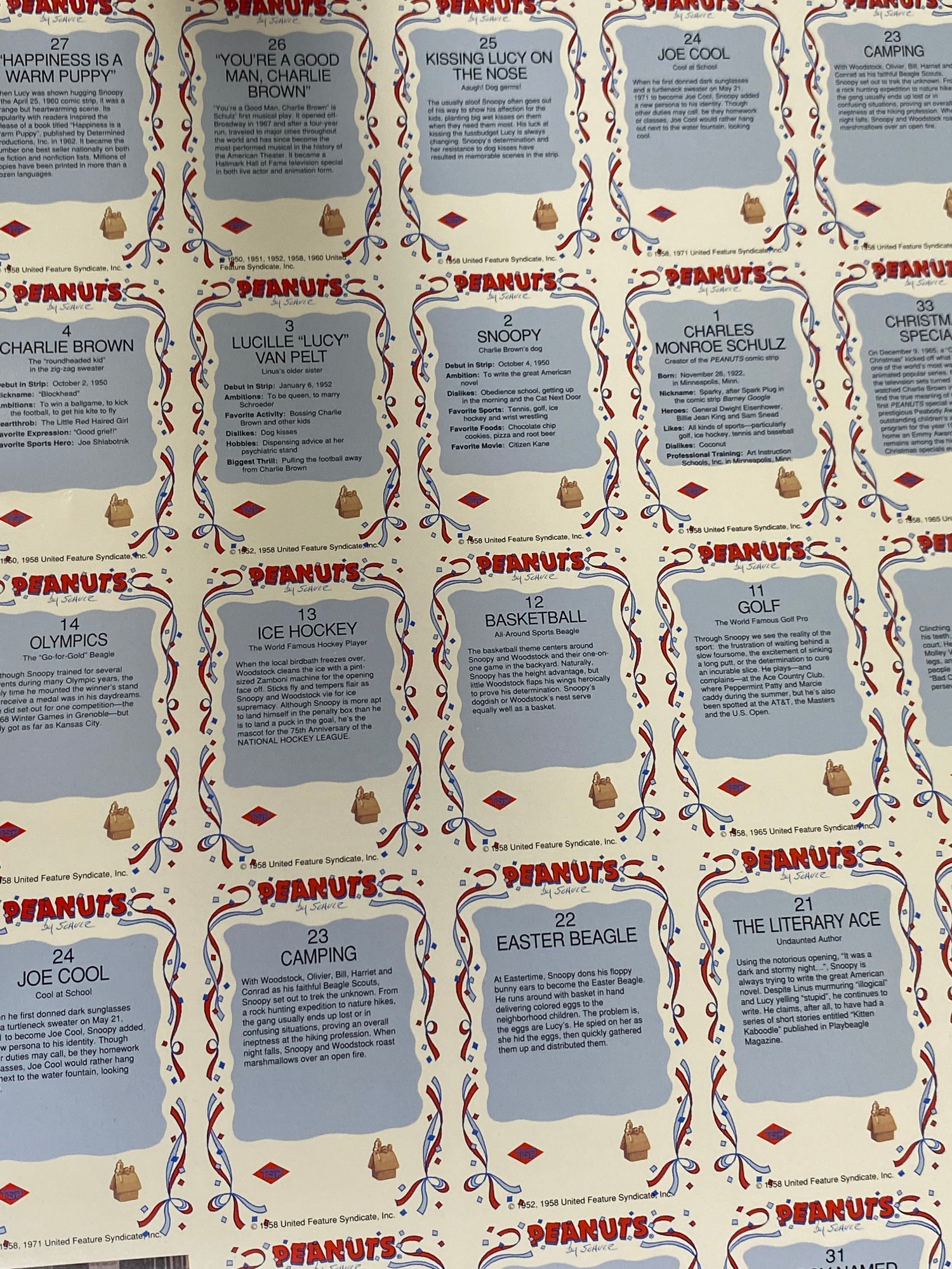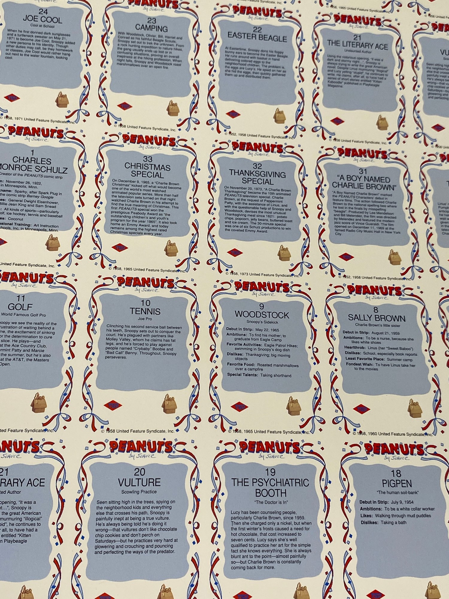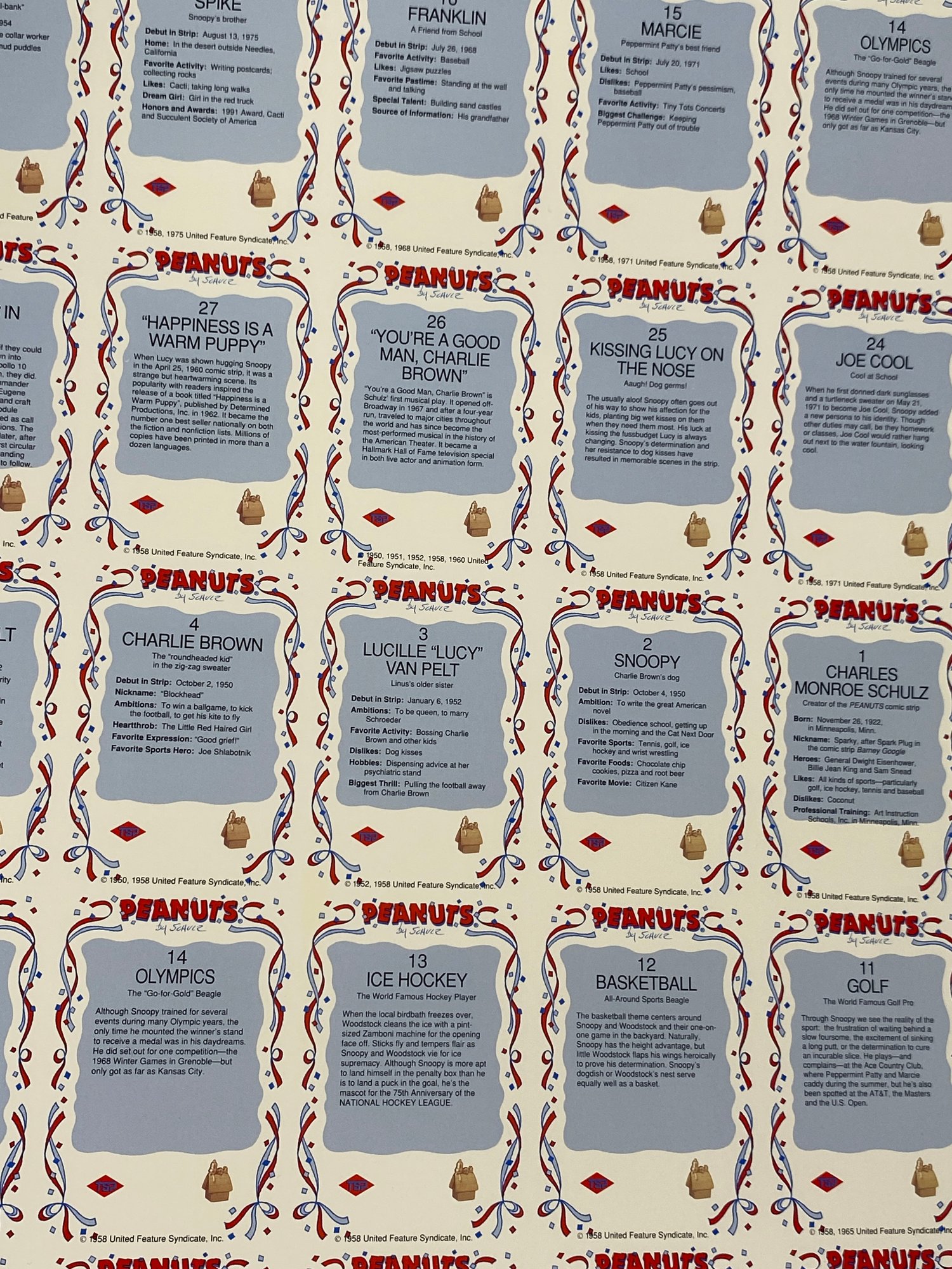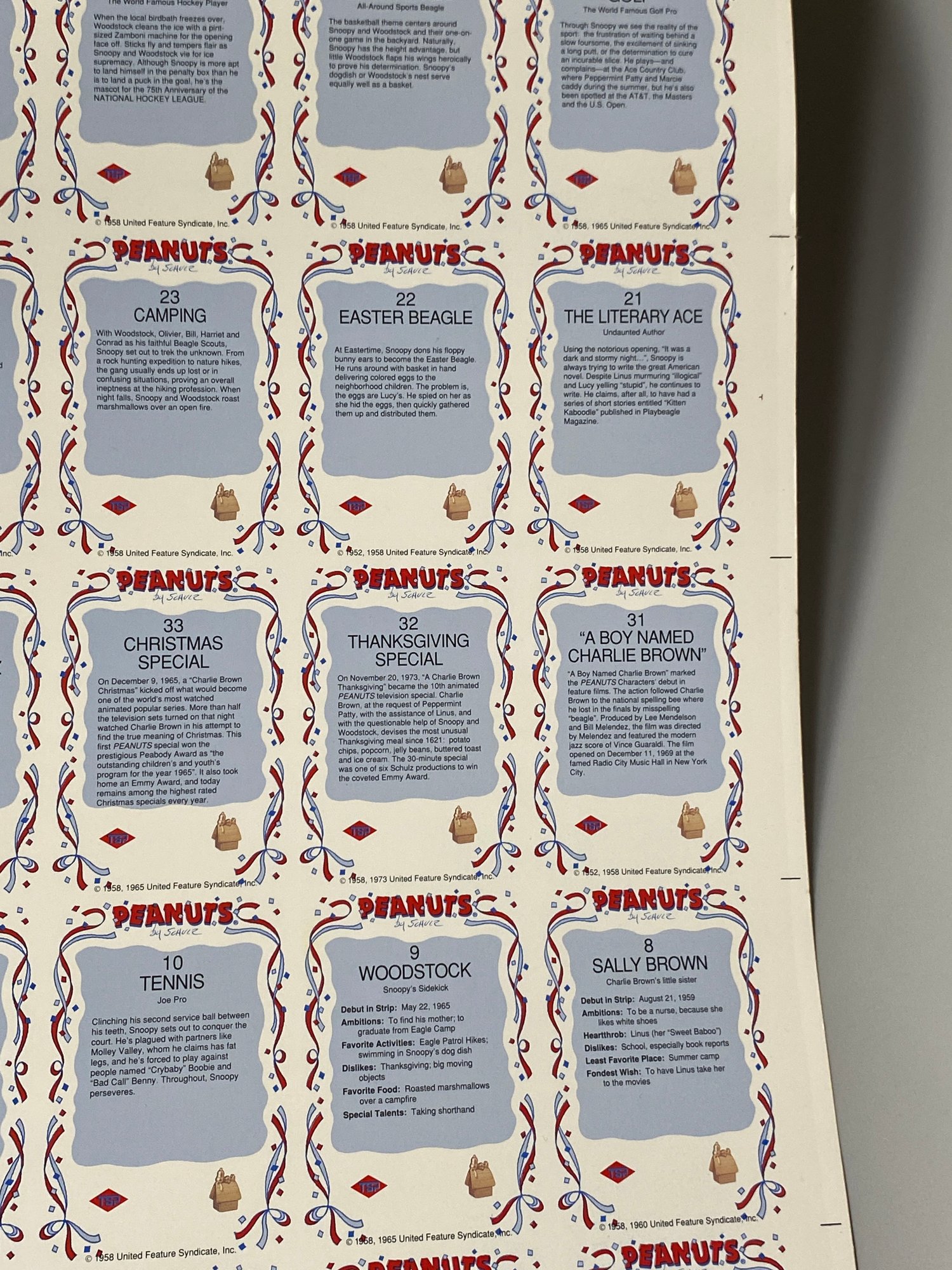 The sheets are in very good condition and contain three complete sets of 33 trading cards. There are two sheets of cards.