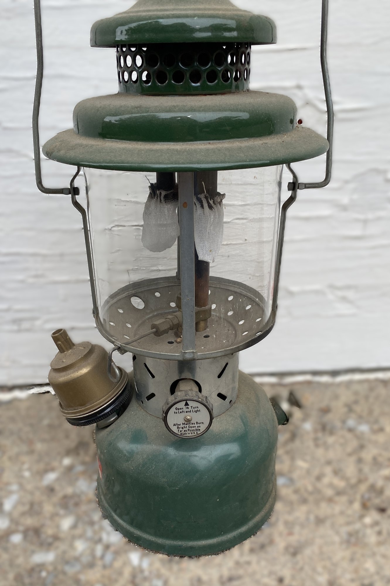 The lantern appears to be like-new or gently used condition and just needs to be cleaned. It is model 220E.