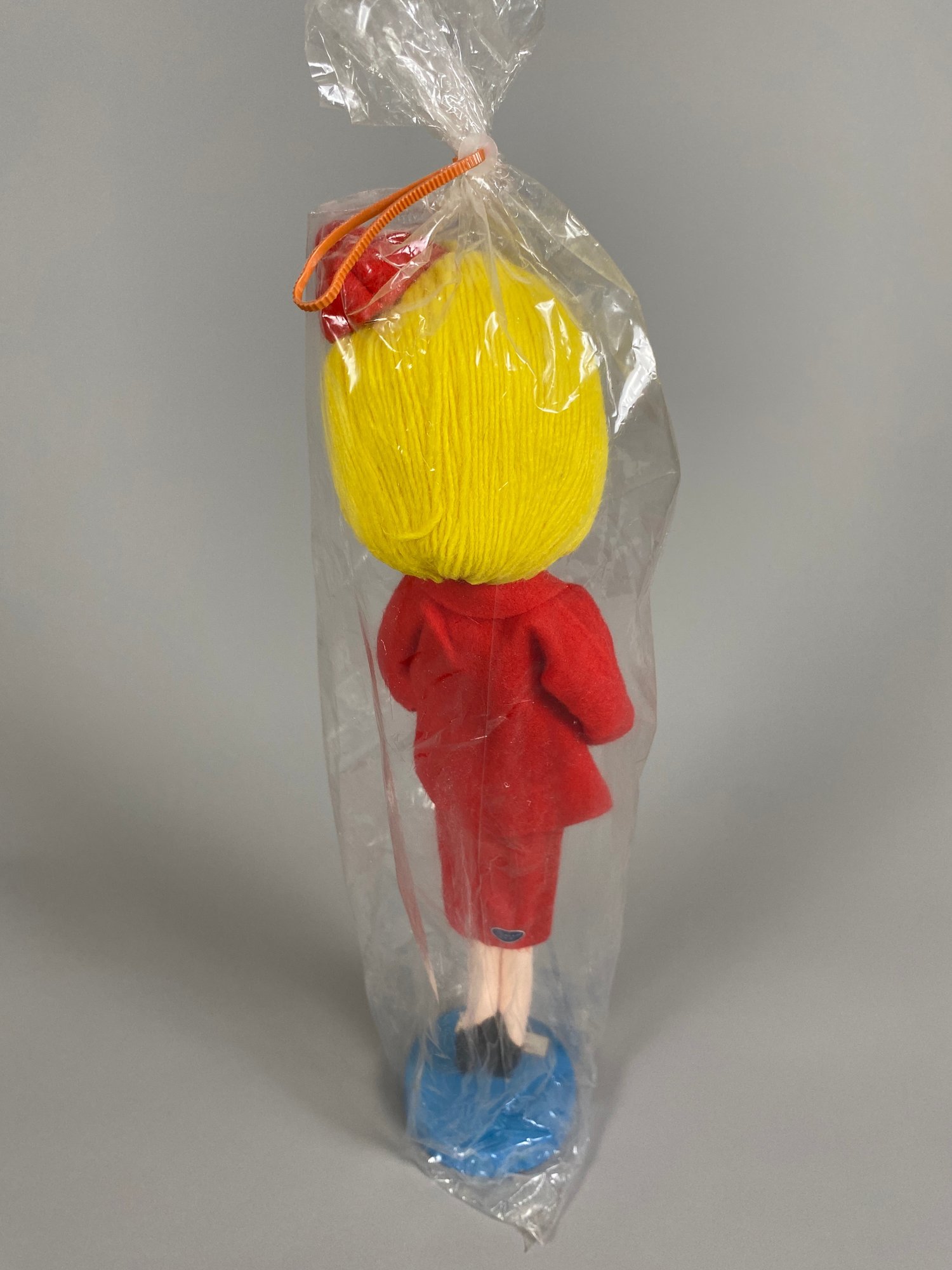 The doll is in great condition and appears to have never been opened. It measures 13-1/2" tall. The travel case is also in good condition and the latch works.