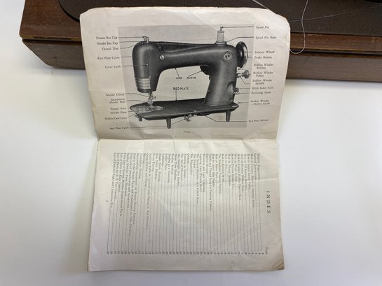 Notes: The case and sewing machine are in good condition. The foot pedal works and the machine functions correctly.